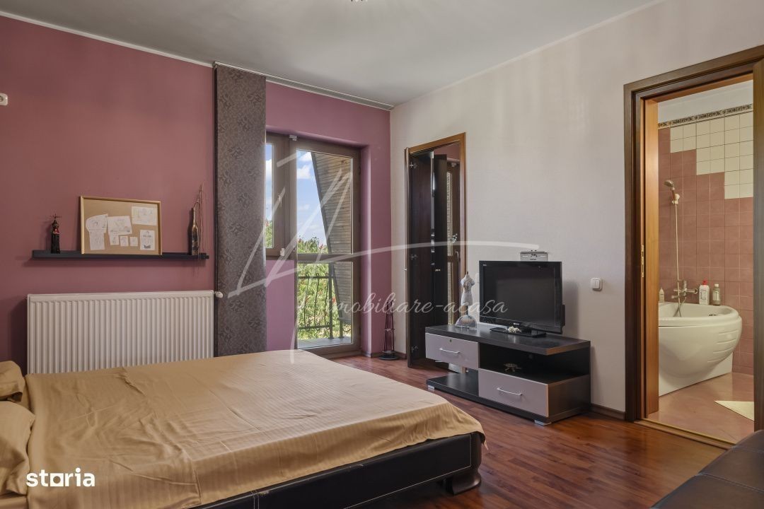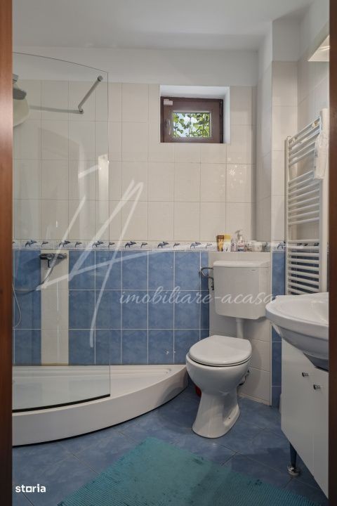 Tip tranzactie: Vanzare Zona: Balotesti, jud. Ilfov, str. Ion Lahovari, nr. 118 Pret vanzare: 400.000 EUR Numar etaje: S+P+E+pod Numar camere: 7 (5 dormitoare, living, birou) Numar bai: 6 Numar bucatarii: 1 Suprafata desfasurata: 357 mp Suprafata teren: 1.935 mp Front stradal: 25 ml Anul constructiei: 2004 Facilitati: - amplasament excelent, acces imediat catre DN1 - strazi asfaltate, areal elegant - ideala locuinta pentru o familie extinsa sau camin pentru seniori - curte cu livada de pomi fructiferi si gradina amenajata, vegetatie matura ingrijita - intretinuta excelent. In arealul Balotestiului din imediata proximitate a capitalei care, de la an la an s-a dezvoltat, a devenit tot mai elegant si a atras oameni de calitate, regasim o oaza de liniste ce se intinde pe o suprafata generoasa de teren presarat cu pomi frucriferi si vegetatie ornamentala matura. Intrand in curte printre portile automate, parcand pe unul dintre cele 3 locuri acoperite, poti vedea lesne, chiar de la o distanta considerabila, casa cu arhitectura frumoasa amplasata pe fundalul curtii, in spatele livezii. In spatele curtii si a casei, regasim o zona ce te imbie doar la relaxare, amenajata cu arbusti ornamentali, un mic iaz, un foisor cu gratar, toate armonizate pentru a-ti oferi sentimentul de vacanta in propria ta casa. Locuinta cu dublu acces (din fata si prin terasa din spate), este pe cat de generoasa, pe atat de intima si cocheta, in ciuda amenajarilor realizate in urma cu 15 ani, dar conservate impecabil de o familie care se sprijina pe principii sanatoase si care a considerat intotdeauna ca propriul confort se intretine prin mentinerea unui minim de disciplina in spatiul in care iti doresti o viata de calitate langa oamenii dragi. Stilul asta de casa mi-a placut mereu: living inalt cu semineu, bucatarie si zona de dining pentru organizarea meselor in familie, un birou in care sa te retragi chiar si pentru un cognac bun insotit de o tigara aromata de foi. Scara interioara generoasa, curbata, conduce catre holul imens de la etaj cu vedere catre living si acces in terasa ce iti confera un peisaj placut ochiului, al zonei din spatele casei. Dormitoarele in numar de 5, fiecare cu baie proprie, sunt comandate de holul larg, de asemenea cu vedere catre living-ul parterului. Alaturi de subsolul casei in care este amplasata si centrala termica ce deserveste intreaga constructie, compartimentat in camere generoase cu functionalitati multiple, printre care si un buncar facut ca la carte cu pereti din beton armat cu grosimea de 40cm, exista un pod mare destinat depozitarii, cu acces pe o scara mobila ce permite accesul. In intreaga ei plenitudine, atat constructia practica, precum si curtea de aproape 2000 mp merita intreaga ta atentie, mai ales daca te identifici cu intregul areal, chiar inainte de a face o vizita sau o oferta de cumparare. Si, pentru ca ma gandesc sa nu te plictisesc prea tare, m-as opri aici. Si as aprecia ca pentru orice alte detalii legate de proprietate in vederea vanzarii, inclusiv pentru programarea unei vizionari, sa ma contactezi oricand.