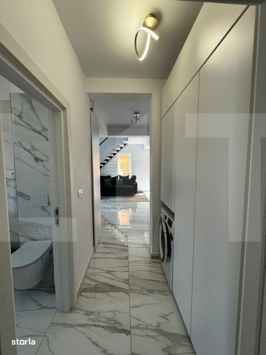 Descoperă eleganța minimalistă în Giroc - gata să devină „acasă” Vă propunem spre vânzare un apartament deosebit, cu 3 camere, situat într-o clădire nouă (finalizată în 2021). Suprafață generoasă de 82 m², dispusă pe două niveluri unite printr-o scară interioară cu linii moderne, care conferă spațiului personalitate și armonie. Detalii care fac diferența: Living luminos, finisaje lucioase și detalii ce amintesc de eleganța marmurei - perfect pentru relaxare sau socializare 2 dormitoare amenajate minimalist, cu mobilier premium, texturi fine și tonuri neutre Bucătărie complet utilată, cu electrocasnice moderne integrate discret în design Băi spațioase, finisaje de calitate superioară, atent alese pentru un aer sofisticat Apartamentul se vinde complet mobilat și utilat lux, exact așa cum îl vezi - tot ce trebuie să faci este să vii cu lucrurile dragi și să te muți. Situat într-o zonă liniștită din Giroc, aproape de școli, magazine și mijloace de transport - locul ideal pentru familie, cuplu sau ca investiție sigură și elegantă. Pentru mai multe detalii sau o vizionare, te invit cu drag să mă contactezi: