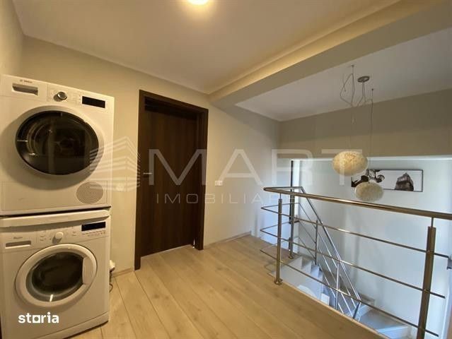 Smart Imobiliare va propune spre inchiriere o casa individuala SMART, cu 5 camere, mobilata si utilata modern, situata in zona Turnisor, pe o strada privata, exclusiv de case, departe de aglomeratia orasului. Construită în anul 2010, situată într-o zona renumita din Sibiu și fără îndoială printre cele mai bune locatii din zonă, această proprietate oferta sentimentul de "acasa". Aceasta casa poate fi varianta ideala pentru o famile care isi cauta o casa intr-o zona buna, o locuinta confortabila si spatioasa. Casa are un regim de inaltime Parter + Etaj si o suprafata utila de 250 mp. Separat de acest spatiu util, casa dispune de o terasa frumos amenajata, 2 balcoane, o curte libera de cca. 300 mp. Curtea este pavata si frumos amenajata. In plus, exista posibilitatea de a parca in curte, astfel chiriasul nu ar intampina probleme in a gasi loc de parcare. Casa beneficiaza de un demisol mare, care este format dintr-o zona de relaxare, un garaj si multe spatii de depozitare. La parter regasim un hol, un birou cu baie proprie, o bucatarie separata, o zona de dining, un living frumos amenajat, cu iesire pe terasa acoperita si un grup sanitar iar etajul este format dintr-un hol, 3 dormitoare (un dormitor cu baie proprie si dressing), un al doilea dressing si o baie. Accesul in balcoane se face din dormitoare. Casa este luminoasa si are multe geamuri mari, astfel te poti bucura de multa lumina naturala. Imobilul este disponibil oricand si se preda mobilat si utilat. Casa Smart totul fiind integrat intr-un sistem inteligent, putand fi programate de pe telefon: temperatura in casa, poarta electrica la intrare, garaj cu deschidere electrica și climatizare, senzori de inundație în fiecare baie ai bucatarie. Ca si dotari casa beneficiaza de incalzite in pardoseala, aer conditionat, sistem supraveghere video și alarma, tamplarie PVC de calitate, plase insecte, gresie, faianta, parchet etc. Casa se inchiriaza exact cum este prezentata in imagini, detine un sistem fotovoltaic care produce 10KW, costuri de intretinere fiind foarte reduse. De ce sa inchiriezi aici? - zona buna, cu acces facil - multe puncte de interes in apropriere - mobilata si utilata - incalzire in pardoseala (la parter) - 5 grupuri sanitare - curte libera, frumos amenajata cu tuia si dale de beton - loc de parcare in curte - 2 balcoane si terasa acoperita - garaj si multe spatii de depozitare - control temperatura de la distanta - poarta automatizata si videointerfon - alarma si camera de supraveghere - strada privata, numai de case Pentru mai multe detalii si programarea unei vizionari va rugam sa contactati agentul si sa specificati ID ul proprietatii P6828