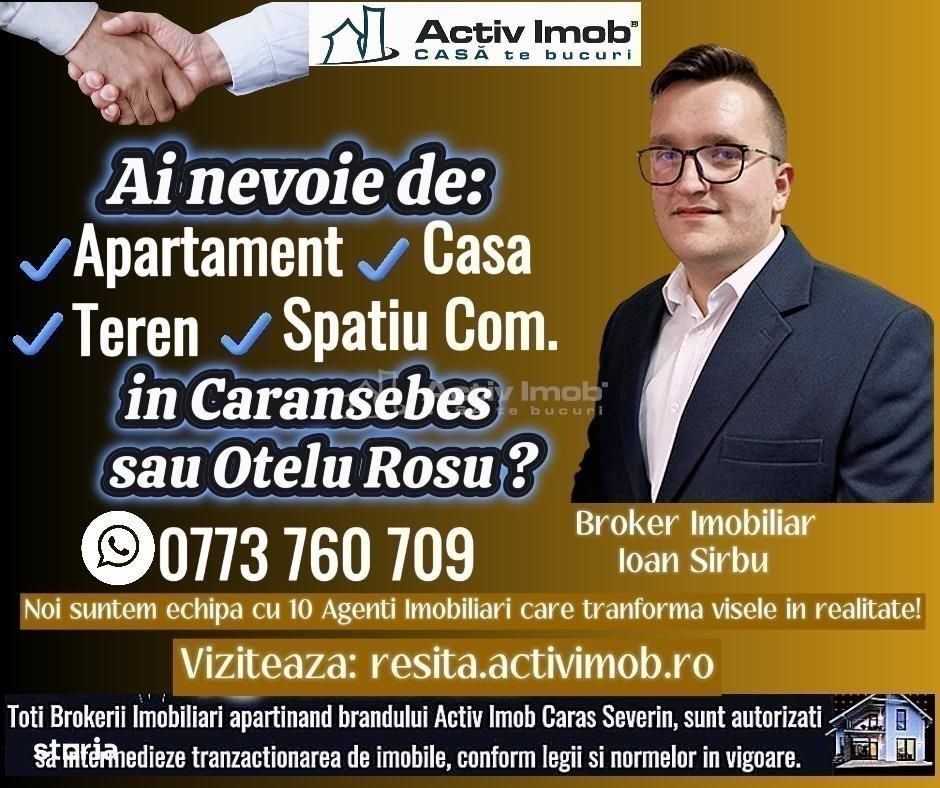 BENEFICII PENTRU CLIENTII ACESTEI OFERTE: Proprietatea este situata in Zona Parcului Dragalina din Caransebes, in apropiere se regasesc blocuri de locuinte cu spatii comerciale la parter, diverse unitati comerciale si bancare etc. Transportul public este bine deservit, in imediata apropierea aflandu-se statiile de autobuz cu rute interne. Proprietatea se adreseaza antreprenorilor, indeosebi cu servicii de comert cu amanuntul si nu numai, datorita amplasamentului in zona cu trafic pietonal. Proprietatea este uscata, nu sunt urme de infiltratii sau miros neplacut, are functional sistem de camere video, este racordata la reteaua de apa, canalizare, curent 220w.Incalzirea si apa calda asigurata de centrala termica pe gaz. Spatiul se inchiriaza la pretul de 500 euro pe luna, insotit de toata documentatia, Extras de Carte Funciara, liber de sarcini, Certificat Fiscal fara datorii. Poate avea diverse destinatii de activitate de la sevicii la comert, productie, birouri, etc. Daca si dumneavoastra aveti o proprietate in Caransebes sau in Judetul Caras-Severin si doriti sa o vindeti sau sa o inchiriati va rugam sa sunati la numerele de telefon-