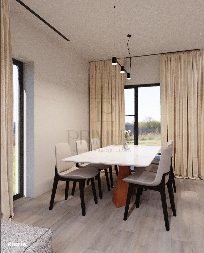 PRIMUM IMOBILIARE are placerea sa va prezinte spre vanzare un duplex de forma P+E, unit prin camera tehnica. Acesta dispune de 112 mp utili. Stadiul actual al constructiei este "la alb". Aceasta se poate vinde la cheie cu panouri solare montate la pretul de 189.000! Compartimentare: Parter: hol, baie, bucatarie, camara depozitare, scara, living, dining si spatiu tehnic; Etaj: dormitor matrimonial (cu baie si dresing incluse), dormitor 2, dormitor 3, baie; Imobilul se vinde la cheie, avand urmatoarele specificatii: - finisaje in buget 200lei mp gresie, 150lei mp parchet, obiecte sanitare Grohe; - usi Porta Doors buget 1500 lei; - tamplarie PVC Rehau 3 sticle 7camere; - termosistem 10-30cm EPS100; - acoperis tip terasa necirculabila; - 2 placi de beton; - centrala proprie cu incalzire in pardosea; - pompa de caldura; - panouri fotovoltaice + dosar prosumator; - aparataje de calitate - Gewis Grohe; - obiecte sanitare incluse; - curte amenajata la cheie cu sistem de irigatie, pavaj, plante si pomisori; Imobilul va fi racordat la toate utilitatile; Imaginile de prezentare sunt cu caracter orientativ, fiind randari. Imobilul se vinde nemobilat. Pentru mai multe detalii, ne puteti contacta telefonic!
