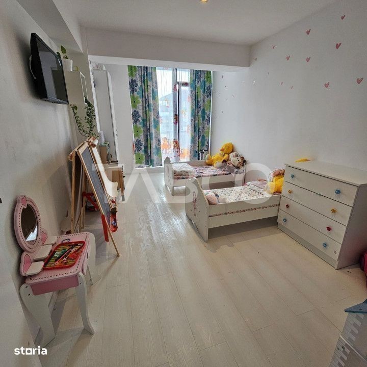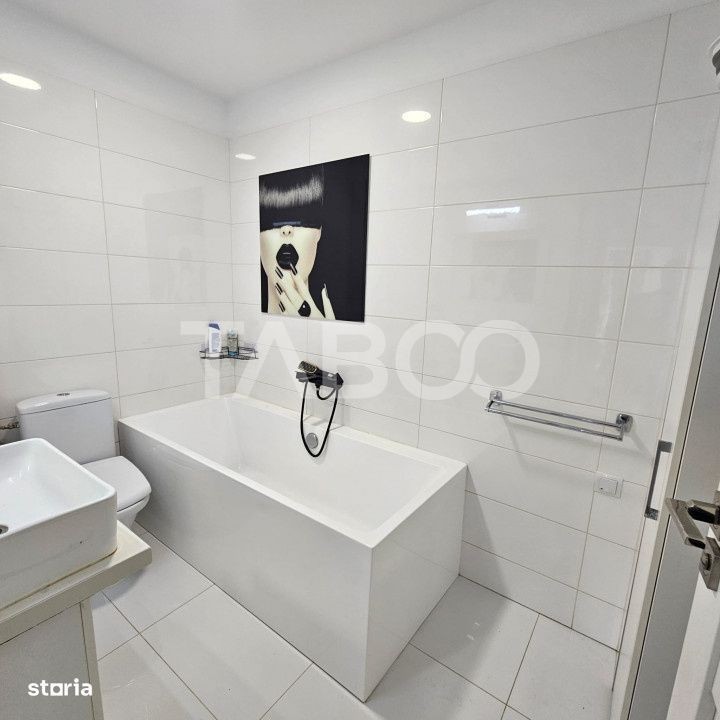 Apartament 3 camere de vanzare, decomandat, 82 mp, zona Doamna Stanca, Sibiu. Acest apartament ofera un spatiu de locuit modern si confortabil, perfect pentru o familie sau pentru cei care doresc un stil de viata de calitate iar locuinta dispune de toate facilitatile necesare pentru un trai confortabil si economic. Compartimentarea decomandata include doua dormitoare spatioase, doua bai moderne si un living open space ce se imbina armonios cu bucataria complet utilata si renovata recent in 2024. Privelistea superba catre Muntii Fagaras adauga un plus de valoare si relaxare zilnica. • Un loc de parcare inclus in pret • Pretabil investitie sigura • Parcare extra pentru vizitatori • Locatie ferita de aglomeratie, bloc cu 2 lifturi. • Priveliste catre Muntii Fagaras TABOO Imobiliare propune un apartament de vanzare cu 3 camere, decomandat, situat in localitatea Sibiu, zona Doamna Stanca, aflat la etajul 7 intr -un imobil tip bloc cu regim de inaltime pe Parter + 11 Etaje; anul constructiei 2017, structura caramida. Suprafata utila de 82 mp + 2 balcoane insumand 6 mp. • Hol de intrare; • Living cu bucatarie deschisa; • Baie cu cada; • Baie de serviciu; • Dormitor matrimonial • Dormitor de copii • 2 balcoane insumand 6 mp; • Usa intrare: metal; • Usi interioare: celulare; • Tamplarie ferestre: pvc, termopan; • Pereti: vopsea lavabila, faianta; • Podele: gresie. • Bucatarie: mobilata, utilata • Mobilat: complet; • Utilitati: curent electric, apa, canalizare, gaz, catv, telefon, acces internet, fibra optica; • Izolatii: exterior, bloc izolat termic; • Contorizare: apometre, contor gaz, contor curent electric, contorizare separata; • Caracteristici bloc: interfon, lift, acoperis. Apartamentul se vinde mobilat si utilat cu: plita electrica, masina de spalat vase, frigider cu congelator frigider, cuptor cu microunde, masina de spalat haine, uscator de haine si trei televizoare Incalzirea se realizeaza prin centrala proprie, incalzire pardoseala (costuri foarte mici la gaz) si dispune de sistem de climatizare (A.C.). Se accepta ca si modalitate de plata surse proprii sau credit bancar. Pret: 144.890€ Sună-ne acum și află detalii despre această proprietate de vanzare din Sibiu, dar și despre alte proprietăți potrivite pentru tine.