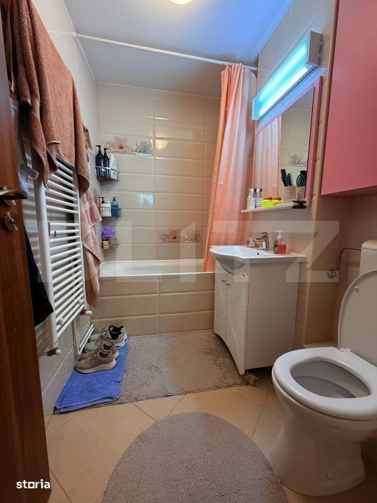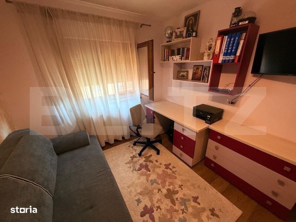 BLITZ va propune spre vanzare apartament spatios cu 3 camere, situat la etajul 3 din 4, in cartierul Tractorul - o zona moderna si foarte cautata, la doar 5 minute de mers pe jos de Coresi Shopping Resort. Suprafata utila este de 64 mp, la care se adauga un balcon generos de 3.5 mp. Apartamentul dispune de 2 bai - una de serviciu si una principala, dotata cu cada - un avantaj major pentru familii sau pentru confortul personal. Locuinta se vinde complet mobilata si utilata, exact asa cum se vede in poze. Mobilierul este de calitate superioara, realizat pe comanda de la Mobexpert - elegant, functional si perfect integrat in spatiul disponibil. In pretul afisat sunt incluse doua locuri de parcare, un beneficiu important in aceasta zona. Apartamentul este ideal atat pentru locuinta personala, cat si ca investitie in vederea inchirierii - zona este foarte cautata, iar dotarile si pozitionarea il fac usor de inchiriat. Nu rata ocazia de a te muta intr-un apartament complet pregatit pentru noul proprietar, suna pentru a programa o vizionare.