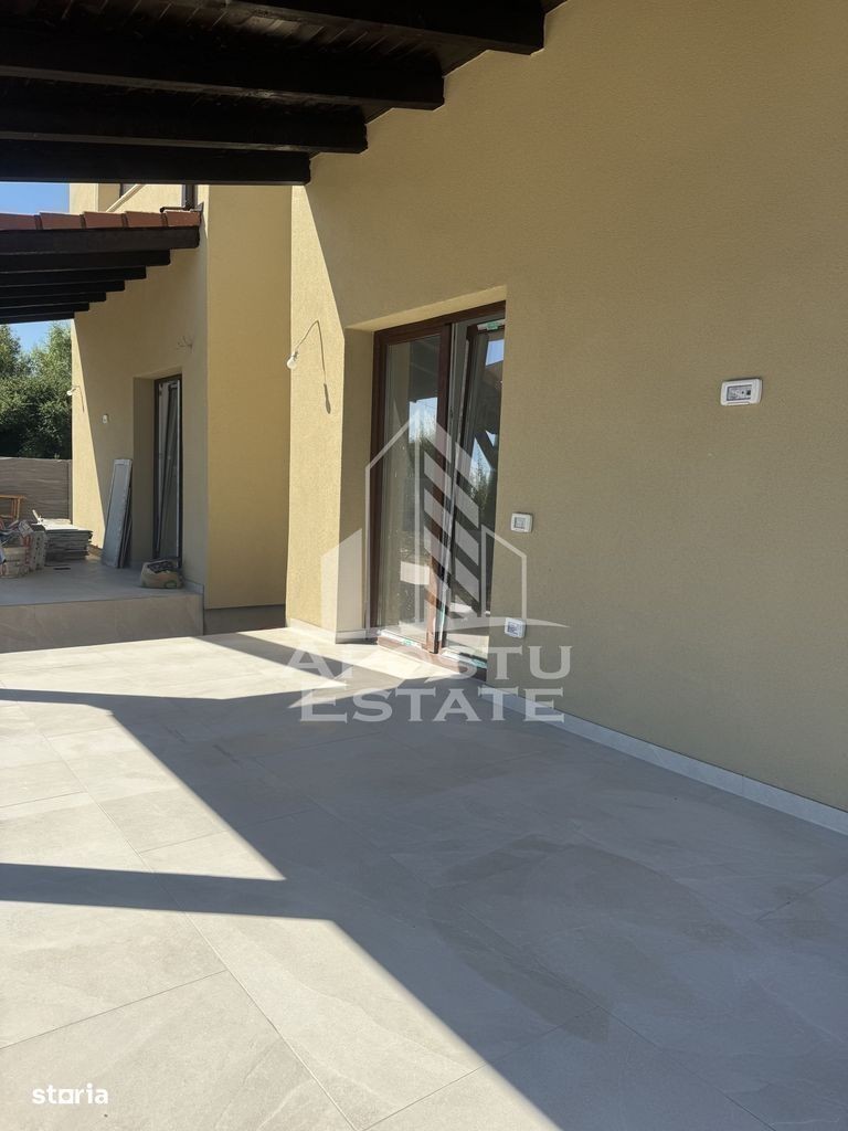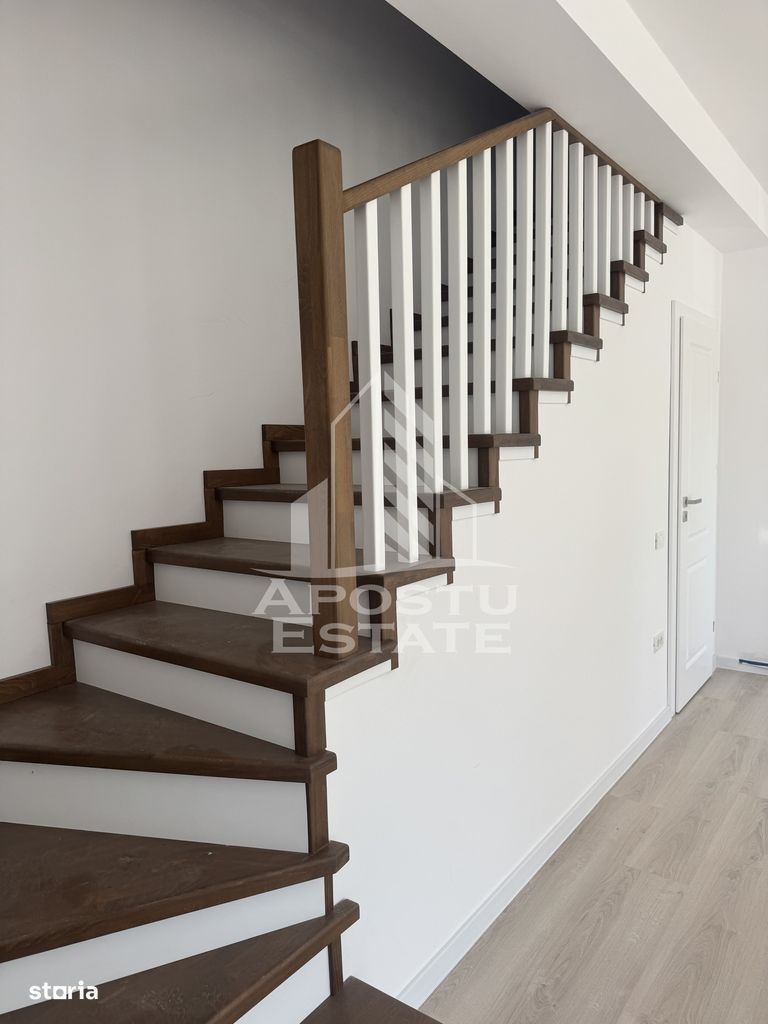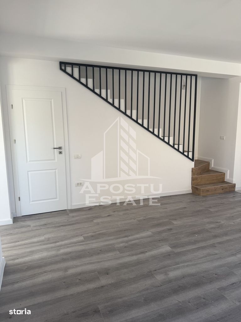 Apostu Estate va ofera spre vanzare Duplex in Ghiroda,zona linistita. Constructie noua,ridicata pe regim de inaltime P+M,din caramida,tamplarile de calitate TRIPAN 4 anotimpuri.Izolatie exterioara de 15 cm eps 80. Strazi asfaltate si pietruite,cartier nou,toate utilitatiile (apa,curent,gaz și canalizare ). Avem doua variante:jumatate de duplex avand 320 mp de curte si 112 mp utili si a doua varianata fara garaj la 478 mp de curte si 112 mp. Distribuire interioara: PARTER: -hol de acces -dormitor -baie -living -bucatarie -debara -terasa mare 20 mp ETAJ: -3 dormitoare - 1 baie Incalzirea se realizeaza prin intermediul centralei pe gaz,prin incalzire in pardoseala. Produs de buna calitate,merita vazut. Va asteptam cu drag la o vizionare,mai multe detalii la telefon.