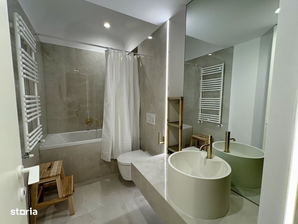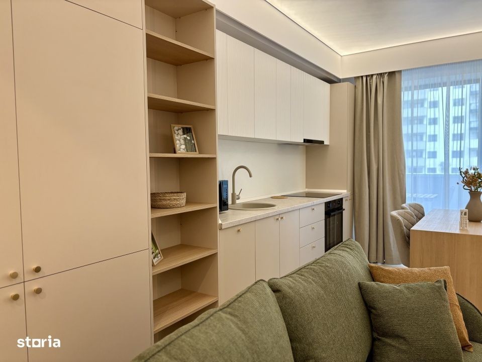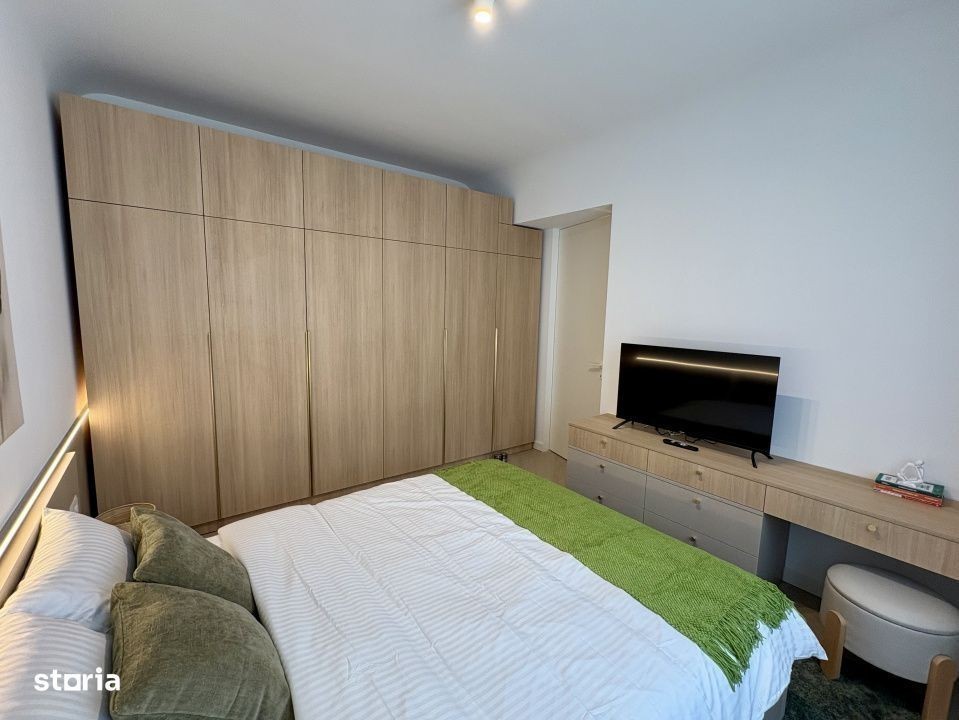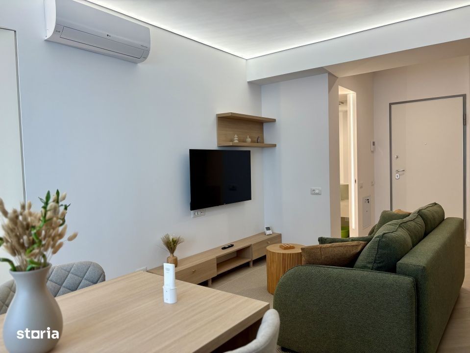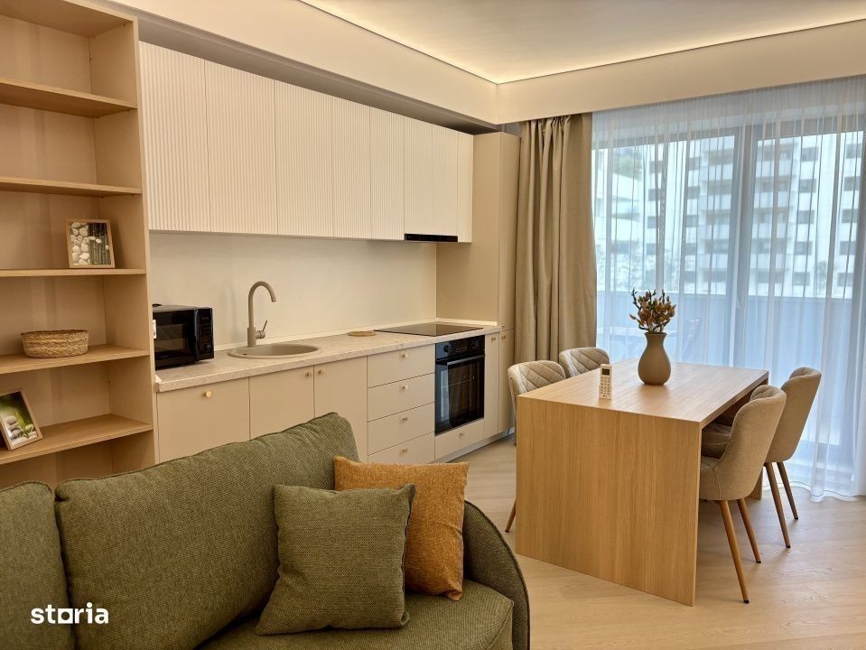Apartament 2 camere - prima închiriere Cortina North Pipera Finisaje premium • Mobilier natural • Design modern & cald Te invitam să descoperi un apartament nou, de 2 camere (55 mp + balcon 3 mp), situat la etajul 1/9 într-un complex rezidențial nou, gândit în cele mai mici detalii pentru a oferi confort, rafinament și liniște. Acest spațiu de 2 camere impresionează prin: Finisaje de înaltă calitate, în tonuri naturale și elegante Mobilier nou, realizat din materiale naturale și atent ales pentru un ambient confortabil Design modern & decor minimalist, gândit pentru o atmosferă caldă și relaxantă Bucătărie complet utilată, spatii de depozitare generoase, dormitor intim si confortabil și o baie cu detalii premium Este locuința ideală pentru cei care apreciază echilibrul dintre estetică și funcționalitate, dintre modern și natural. Un apartament unde fiecare element este ales pentru a transforma spațiul într-un adevărat refugiu urban. Amenajare high-end: • Mobilat complet, design interior personalizat • Parchet triplu stratificat din lemn natural • Uși Filomuro cu toc ascuns • Tavane extensibile Barrisol • Bucătărie complet utilată • Centrală proprie + A/C LG în fiecare cameră Cortina North - facilități premium: • Acces securizat 24/7 • Piscină semiolimpică, sală fitness & wellness • Piste de alergare, grădini amenajate, zonă comercială Localizare strategică: • Acces direct din Bd. Pipera • 5 min de Promenada Mall, Herăstrău, metrou Aurel Vlaicu • În apropiere: Pipera Plaza, Lidl, stații STB Parcare se inchiriaza separat - 50 euro/luna Video & schiță disponibile pe WhatsApp - contactează-ne pentru vizionare!
