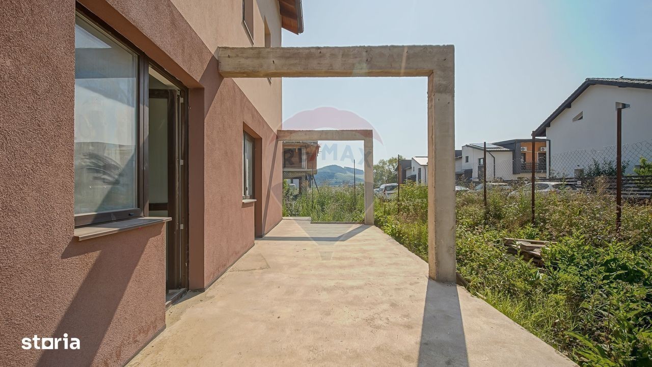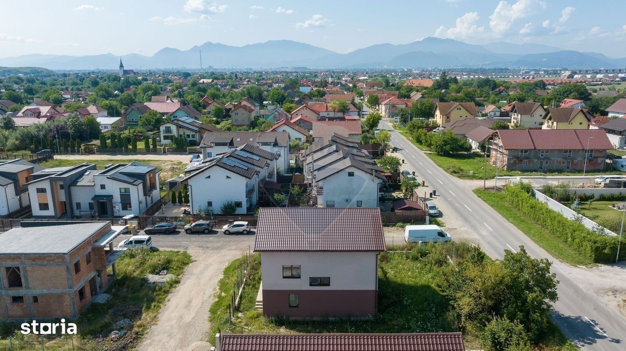 Bună ziua, sunt Zoltan Fejer consultant imobiliar în cadrul biroului Re/max Central și doresc să vă prezint în reprezentare exclusivă și Comision 0 pentru cumpărător, o casă oferită spre vânzare în localitatea Sânpetru. Din punct de vedere administrative ne aflăm în Sânpetru, în realitate, facem referire la un cartier ferit de agitația Brașovului, la poalele Rezervației Naturale Lempeș. Un cadru superb pentru iubitorii de natură, pentru cei ce doresc ca întreaga lor viață cotidiană să fie în imediata apropiere, dar fără să facă parte din viața lor în permanență. Casa amplasată pe un teren de 500 mp, are un regim de înălțime parter, etaj și pod, fiind intabulată în anul 2024. Compartimentarea a fost gândită să satisfacă nevoile traiului modern oferind confort și utilitate. Suprafața utilă este de 145 mp, completați de un pod open space de 70 mp care poate fi amenajat sau compartimentat după nevoia dumneavoastră, ajungând la o suprafață totală de 215 mp. Parterul de 72 mp utili are în componență camera de zi de 30,89 mp, bucătăria de 11,44 mp cu acces în cămara de 3,21 mp, baie de 3,96 mp, hol de 13,03 mp și un birou de 9,63 mp pentru cine lucrează de acasă. Din camera de zi și din bucătărie există acces către terasa de 44 mp. Etajul, mai exact zona de dormit, a fost structurat în două părți. Zona matrimonială compusă din dormitor de 18,64 mp, dressing de 6,28 mp și baie de 5,80 mp. A doua zonă este compusă din două dormitoare cu acces din hol de 15,61 mp, respectiv 14,92 mp, și o baie de 5,48 mp. Casa se vinde cum este prezentată în imagini! Pentru detalii și vizionare, vă rog să mă contactați telefonic! Tel: