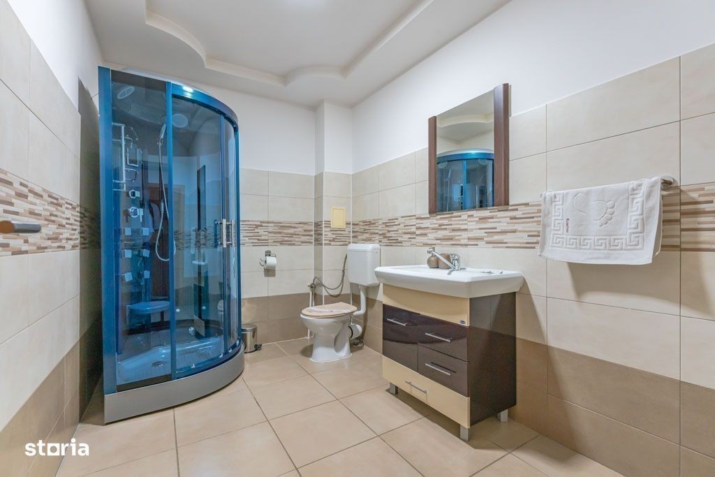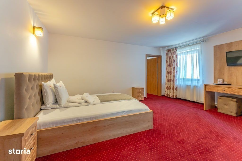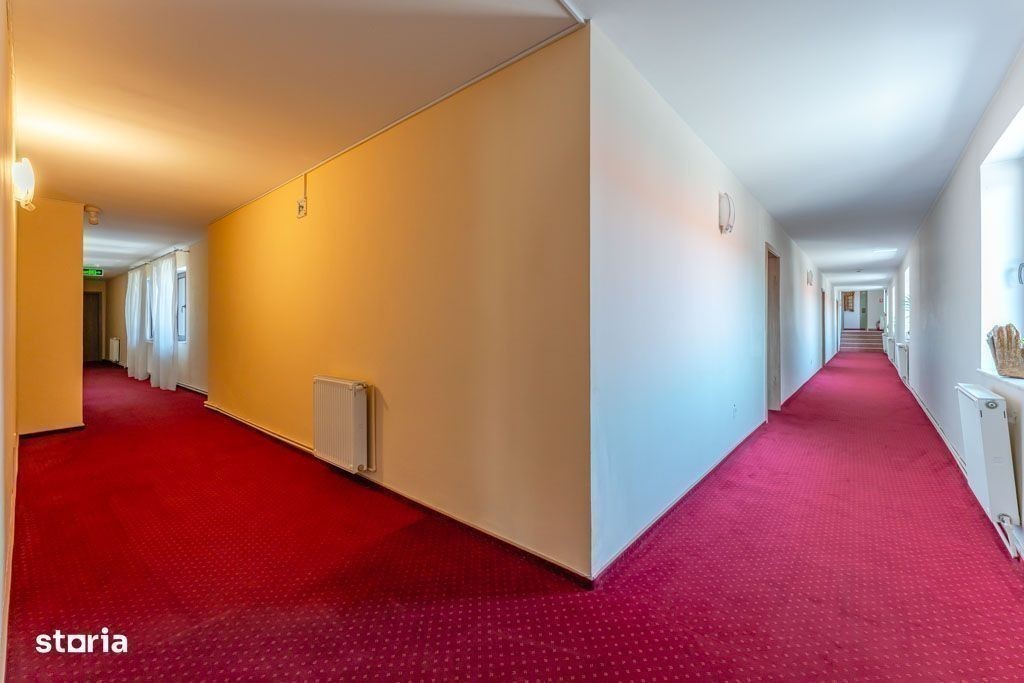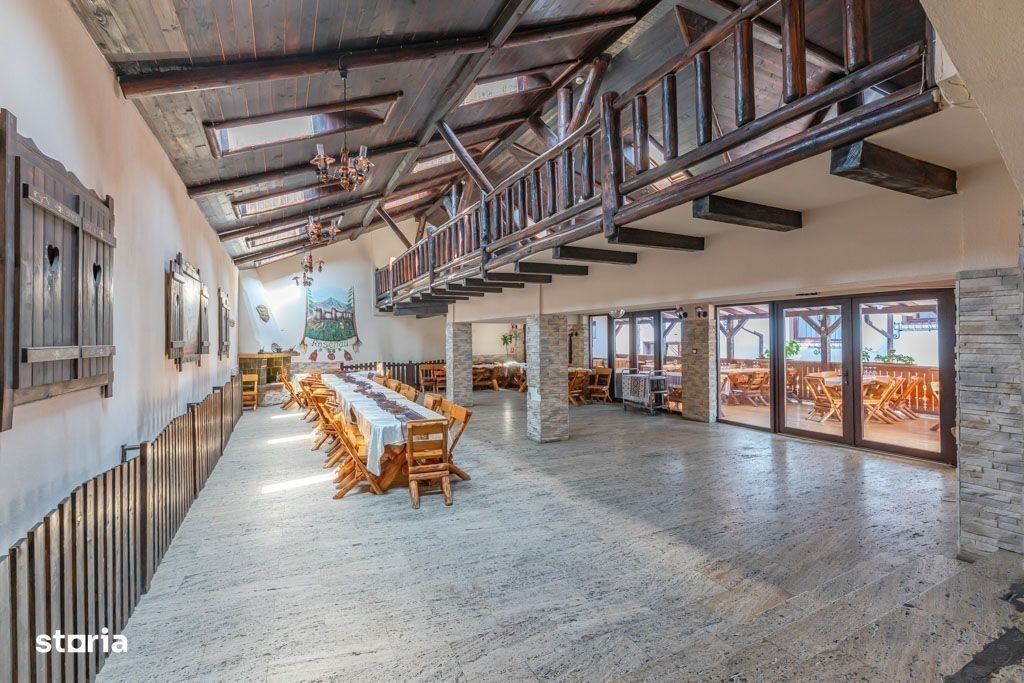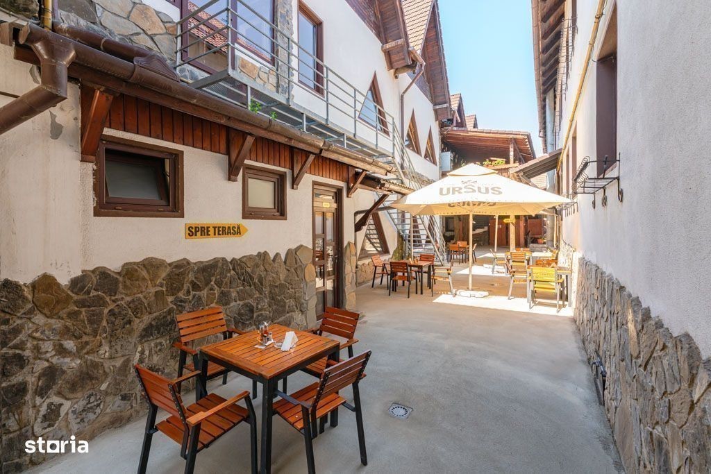 Vă propunem spre vânzare Pensiunea Rosenau, o afacere la cheie situată în localitatea Râșnov, la numai 400 de metri de punctul de acces către Cetatea Râșnov. Clasificată oficial la 3 margarete, proprietatea este în prezent funcțională și reprezintă o oportunitate de investiție solidă într-una dintre cele mai dinamice zone turistice din România. Complexul, cu o suprafață utilă de aproximativ 2.000 mp, este structurat în patru zone distincte. Prima zonă, destinată cazării, este compusă din recepție, o sală de conferințe și 20 de camere cu baie proprie; o parte dintre acestea necesită un proces de actualizare, oferind posibilitatea personalizării. A doua zonă include două spații comerciale cu acces stradal, însumând circa 140 mp, potrivite pentru închiriere sau activități proprii. A treia componentă majoră este restaurantul, cu o capacitate de aproximativ 250 de locuri, dispus pe două niveluri și dotat cu bucătărie, vestiare, oficiu și grupuri sanitare. În final, a patra zonă constă într-o curte interioară amenajată ca terasă pe două niveluri, ideală pentru servirea mesei în aer liber. Proprietatea este amplasată pe un teren de 869 mp. Sistemul de încălzire este asigurat de o centrală termică pe lemne și un sistem de încălzire prin calorifere. Imobilul este conectat la toate utilitățile orașului, incluzând apă curentă, gaz, canalizare, curent electric și internet prin fibră optică. Conectivitatea cu municipiul Brașov este excelentă. Lângă pensiune se află stația liniei de autobuz 130 (cu capăt de linie la Stadionul Municipal), iar la o distanță de 250 de metri se găsește o a doua stație ce deservește liniile 131 și 140. Comisionul pentru cumpărător este de 0%. Vizionarea proprietății se realizează pe baza unei programări telefonice prealabile.