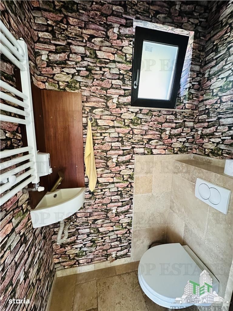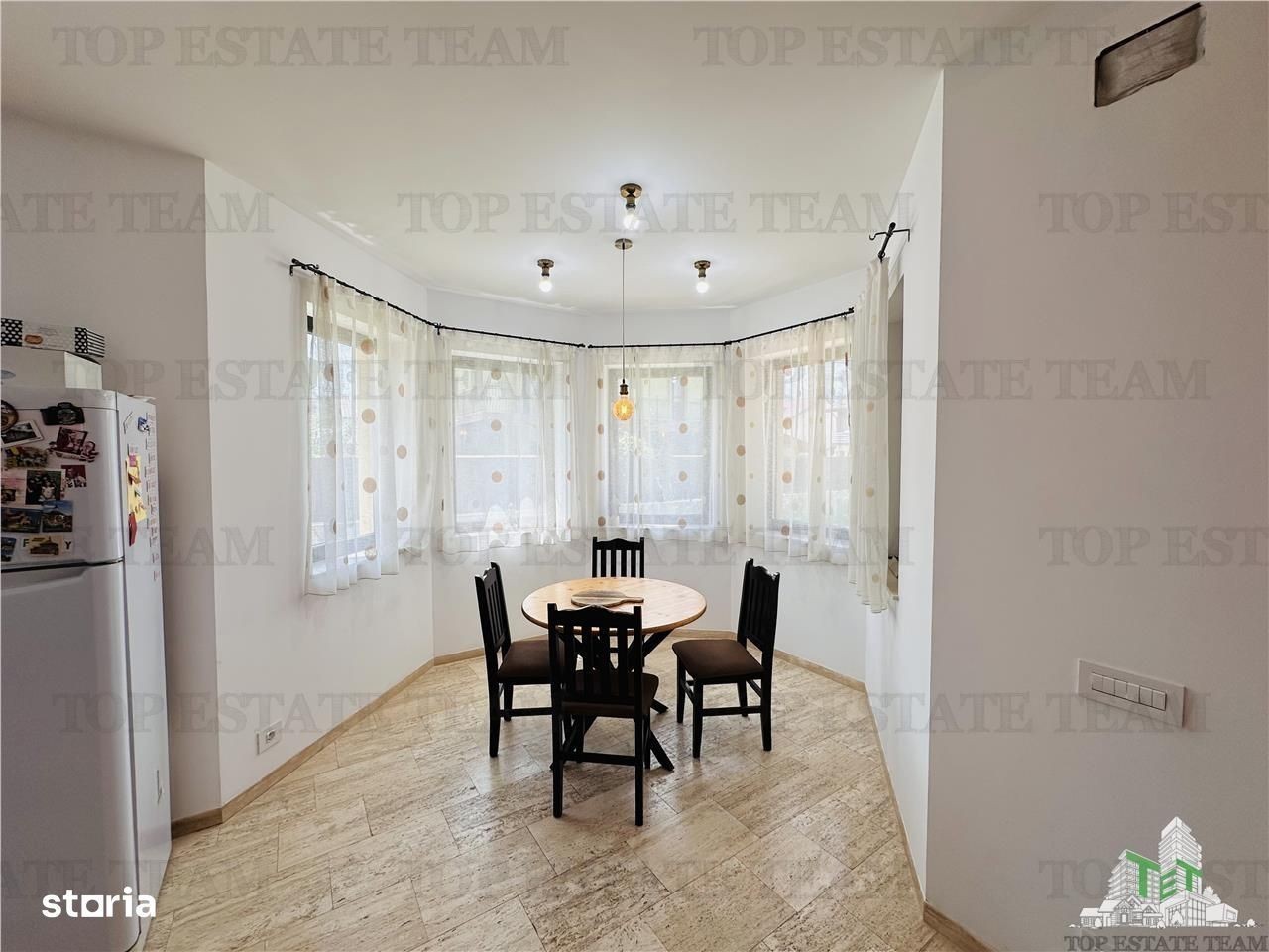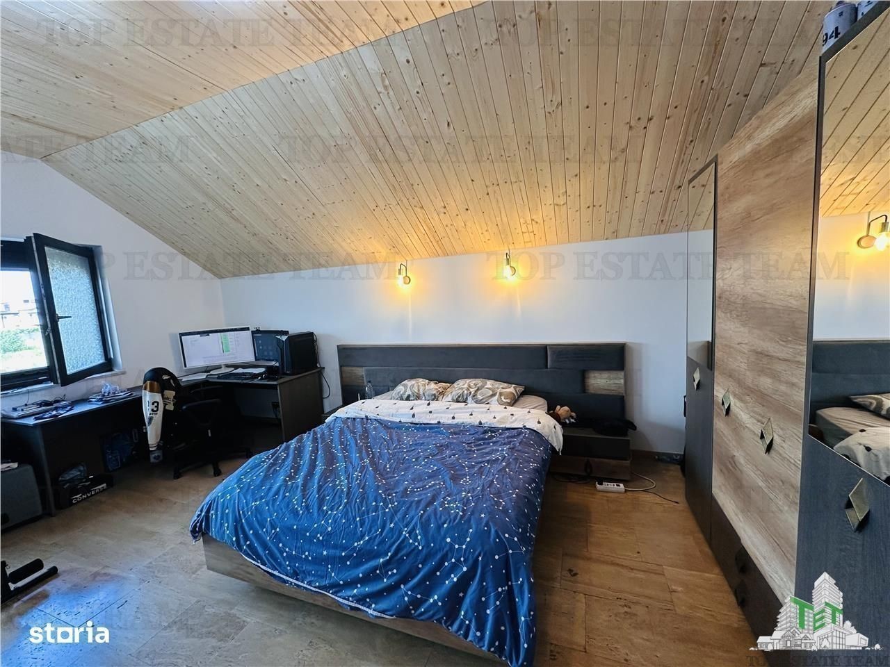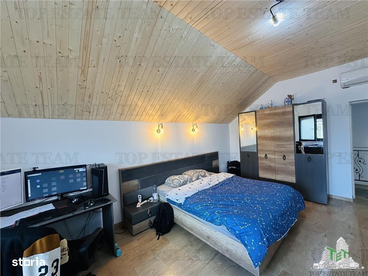 Excelenta prin experienta! Va propunem spre vanzare o vila exclusivista, individuala, parter + etaj + mansarda, 5 camere, de 195 mp utili, 300 mp construiti, cu un teren de 523 mp, situata in CHIAJNA, accesul la vila se face pe un drum privat cu bariera. Structura de rezistenta a vilei este realizata din fundatie, stalpi, grinzi si placa de beton armat. Casa este realizata din caramida Porotherm cu grosime de 25 cm, izolatia exterioara este realizata din POLISTIREN de 10 cm, tamplaria este Salamander Blue Evolution, cu geam tripan 7 camere, acoperișul este din tabla tip Lindab. Amprenta vilei este de 130 mp, terenul liber de constructie, ce este amenajat gradina cu aspersoare automate este de 393 mp, deschiderea la strada este de 29 m. Drept compartimentare optimizata, dispune la parter de un spatiu de 77 mp ce este folosit ca si garaj cu 2 porti de acces automate si o terasa inchisa de 46 mp, un grup sanitar, la etaj gasim un living spatios si luminos de 40 mp, cu o zona de dining, o bucatarie open space mobilata si utilata, si o baie superba. La mansarda dispune de 2 dormitoare cu o baie comuna, si un dressing. Bucataria este utilata cu hota, plita,cuptor, frigider, masina de spalat vase. Vila dispune de curent, gaz,apa,canal. Curtea este extrem de spatioasa, amenajata perfect pentru relaxare, o adevarata oaza de liniste si aer curat, o gradina superba cu aspersoare automate, cu o terasa superba inchisa PUNCTE FORTE IN ZONA: locatie deosebita cu vecini de calitate, liniste, se pot face plimbari in padure sau pe marginea lacului, exista gradinita, scoala, supermarket, restaurante in zona, accesul la vila se face pe o strada privata cu bariere la ambele capete Vila se vinde la pretul de 258000 EURO la care nu se adauga tva, usor discutabil. Oferim consultanta gratuita si facilitarea obtinerii rapide a creditului ipotecar, cu dobanda foarte buna si rate fixe pe 5 ani, fara costuri ascunse. Oferta apartine agentiei Top Estate Team ! Tranzactioneaza cu noi si primul transport de mobila este gratuit, in Bucuresti si Ilfov !