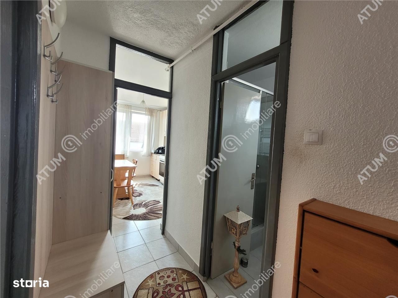 Va oferim spre inchiriere o garsoniera decomandata, moderna, renovata recent, in zona soseaua Alba Iulia din Turnisor, Sibiu. Proprietatea are suprafata utila de 32 mp impartiti in hol de acces, dormitor, bucatarie si baie. Aceasta este dotata cu usa de acces metalica, usi interioare din lemn, geamuri cu tamplarie PVC si foi de sticla termopan, centrala proprie, incalzire prin calorifere si finisat cu parchet si gresie pe suprafata pardoselei, iar peretii sunt zugraviti cu lavabil alb si placati cu faianta. Locuinta se inchiriaza complet mobilata si utilata cu bucatarie generoasa cu loc de luat masa, mobila realizata pe comanda cu iluminare LED, dotata cu aragaz, hota, frigider, baie moderna dotata cu geam de aerisire,obiecte sanitare, cabina de dus inchisa cu sticla, dormitorul dispune de sifonier, pat matrimonial si alte obiecte de mobilier necesare. Garsoniera este localizata la etajul 3 din 4 al unui imobil situat la doar 20 minute de mers pe jos fata de centrul istoric al orasului, in imediata apropiere a statiilor de autobuz, spatii comerciale precum Lidl si Kaufland, banci si alte puncte de interes. Valoarea de inchiriere a garsonierei este de 340 euro + o garantie de 400 euro. ID intern: 2881.