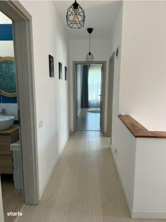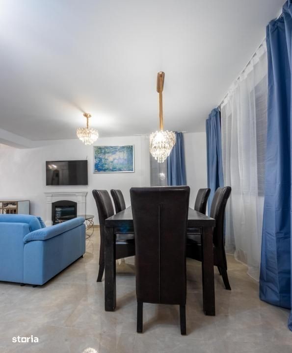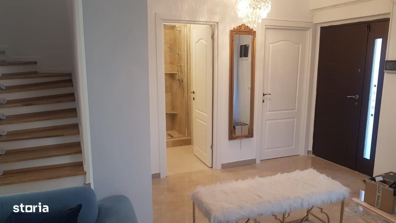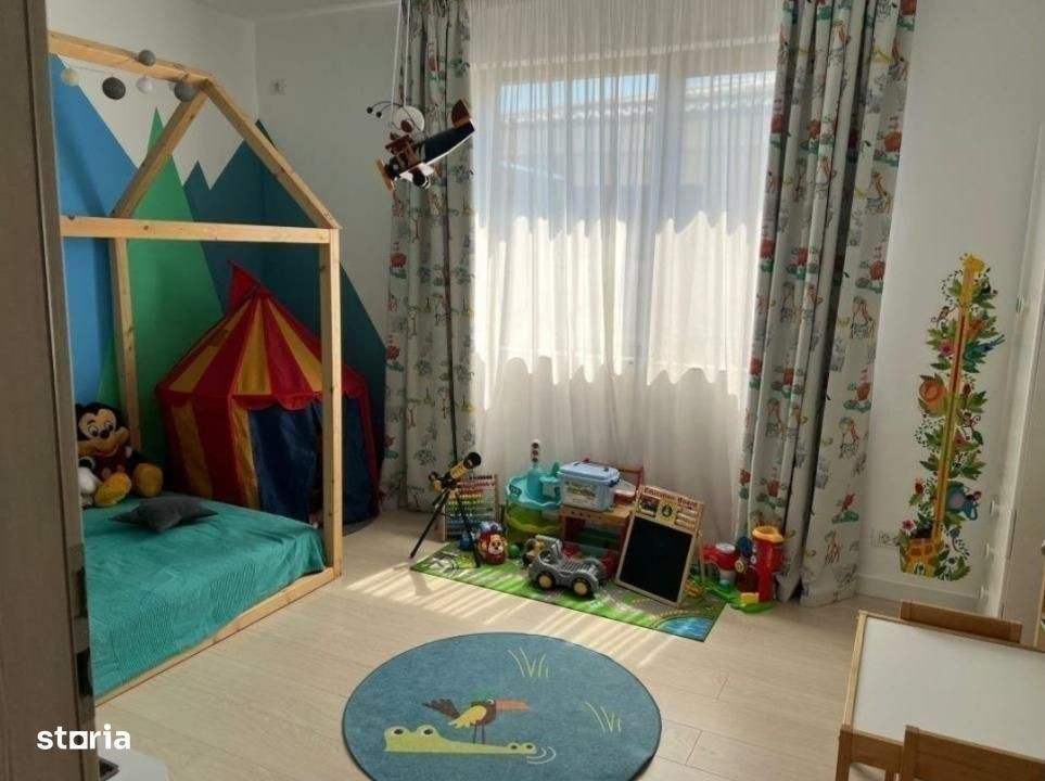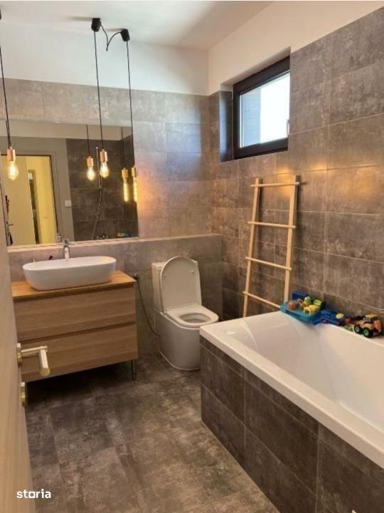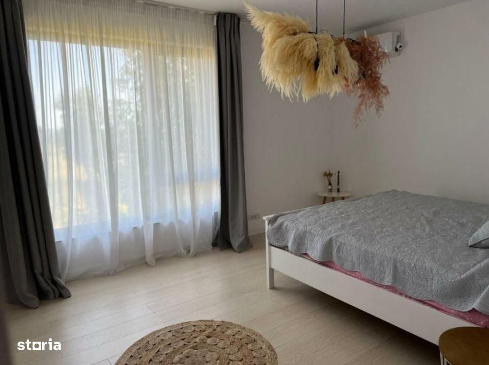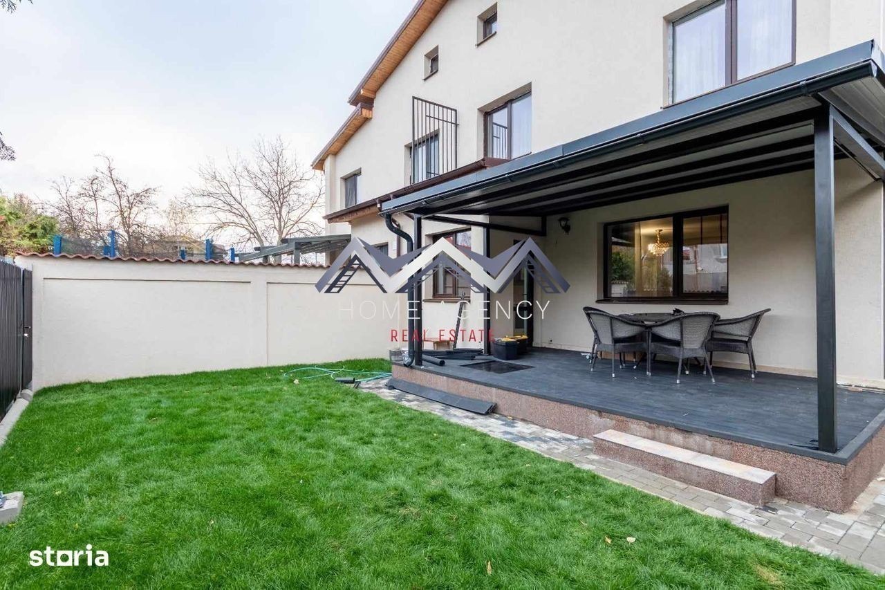 Casă modernă, complet utilată, cu 5 camere, 3 băi, grădină amenajată, în zonă liniștită - aproape de Pipera și Aeroport Vă prezentăm o proprietate deosebită, ideală pentru o familie, situată într-o zonă rezidențială liniștită, cu aer curat și acces facil către puncte de interes esențiale: școli, grădinițe, parc, magazine și mijloace de transport în comun. În proximitate se află Mega Image, Lidl, Penny, Farmacia Dr.Max, restaurantul „La Iancu Signature, iar locația permite acces rapid: 10 minute până în Pipera, 10 minute până la Mall Băneasa și doar 5 minute până la Aeroport. CONFIGURAȚIE: Parter: Living spațios cu deschidere generoasă către terasa exterioară, acces realizat prin ușă glisantă tip tripan Bucătărie complet mobilată și utilată Birou (cu potențial de transformare în dormitor suplimentar) Cameră tehnică Cămară sub scară (include congelator separat) Baie cu duș Etaj: Dormitor matrimonial cu dressing complet mobilat și baie proprie cu cadă Dormitor pentru oaspeți Dormitor pentru copii Baie secundară cu duș, echipată cu mașină de spălat rufe și uscător DOTĂRI ȘI FACILITĂȚI: Utilități complete: apă curentă, canalizare, gaze naturale, curent electric Internet de mare viteză prin fibră optică (Digi 1000) Contract activ de salubritate 4 aparate de aer condiționat cu control Wi-Fi Sistem de supraveghere video Poartă de acces auto cu sistem de automatizare Parcări în curte pentru 2 SUV-uri GRĂDINĂ AMENAJATĂ: Gazon nou, înlocuit în iunie 2025 Sistem automatizat de irigare Robot automat de tuns iarba Strada a fost asfaltată recent (2025), contribuind la confortul general și la accesibilitate. Această locuință îmbină confortul modern cu funcționalitatea, oferind spațiu generos, compartimentare eficientă și facilități premium pentru un stil de viață relaxat și sigur. DISPONIBILA DE LA 1 OCTOMBRIE ID intern: 2864.