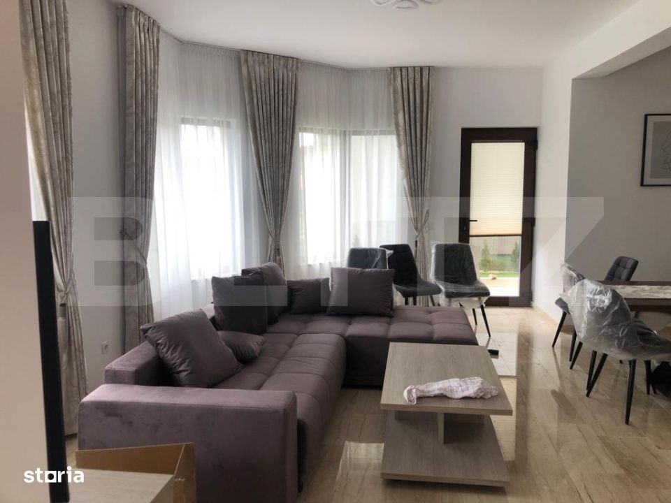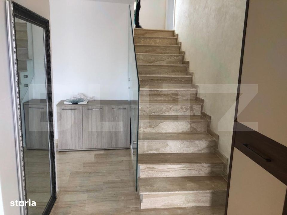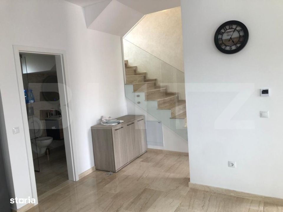Blitz oferă spre vânzare o reședință de excepție, situată în una dintre cele mai apreciate zone ale Becleanului - Cartier Podirei. Construită pentru locuire personală, cu materiale de cea mai înaltă calitate, această proprietate impresionează prin finisajele rafinate din marmură, balustrada elegantă din sticlă și atenția acordată fiecărui detaliu. Casa are o suprafață de aproximativ 160 mp și este complet mobilată și utilată la standarde premium. Beneficiază de foișor amenajat, sistem de irigații automatizat și panouri fotovoltaice de 5 kW, pentru eficiență energetică și independență. Grădina este o adevărată oază, evidențiată de gazon tip rulou de cea mai înaltă calitate, perfect întreținut. Preț orientativ: 210.000 €. Această locuință reprezintă un simbol al confortului, eleganței și bunului gust - ideală pentru cei care doresc să trăiască la superlativ.