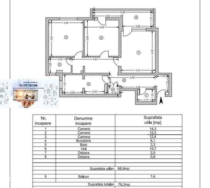 Apartament cu 3 camere, Micro 14, 76mp
