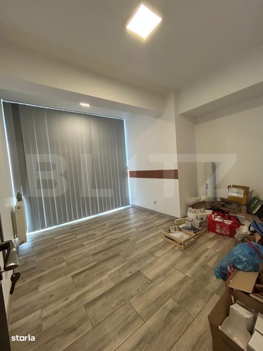 Blitz vă propune spre închiriere un apartament spațios, ideal pentru sediu de firmă sau activități de birou, situat într-un bloc nou, pe o arteră principală din zona Tudor. Localizare excelentă - Apartamentul se află la parter înalt, cu acces facil către stațiile de autobuz și în imediata apropiere de centre comerciale precum Kaufland și Lidl, oferind astfel vizibilitate și accesibilitate excelente. Detalii proprietate: Suprafață generoasă, compartimentare decomandată, Acces direct și eficient, perfect pentru activități de birou; Mobilat parțial - bucătărie complet utilată, băi dotate, aer condiționat; Conexiune la internet de mare viteză; Două locuri de parcare incluse în incinta cu acces controlat; Boxă pentru depozitare disponibilă. Apartamentul oferă flexibilitate și confort pentru desfășurarea activităților profesionale, fiind o alegere potrivită pentru companii care caută un spațiu funcțional, modern și bine poziționat.