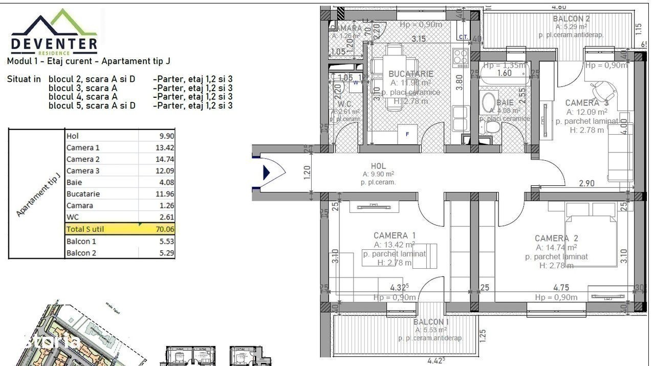 Ap 3 cam, decomandat, 2 bai, CĂMARĂ, 2 balcoane, incalz pardoseala