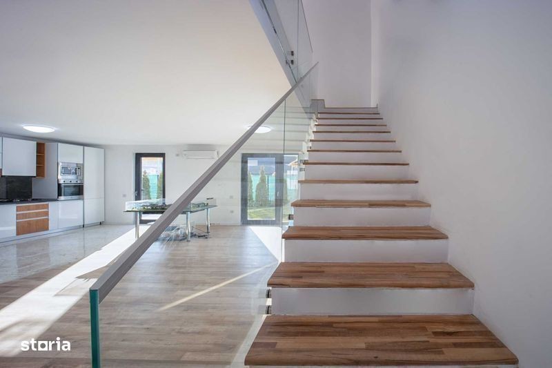 Va propunem spre inchiriere aceasta vila moderna, tip duplex, este disponibila spre inchiriere intr-un ansamblu rezidential recent finalizat, compus din 32 unitati, situat intr-o zona linistita, la doar cateva minute de Aeroportul International Otopeni. Zona beneficiaza de o dezvoltare continua si ofera acces facil la multiple puncte de interes. Proprietatea este construita pe un teren de 200 mp si are o suprafata utila de aproximativ 160 mp, distribuita eficient pe 3 niveluri: Parter: living spatios, zona de dining, bucatarie, grup sanitar, spatiu de depozitare si terasa Etaj: dormitor matrimonial cu baie proprie, doua dormitoare secundare si o baie comuna Mansarda: spatiu versatil, ideal pentru birou, camera de oaspeti sau hobby room. Vila se inchiriaza cu 2 locuri de parcare incluse, situate pe proprietatea privata. Pentru detalii suplimentare sau programarea unei vizionari, va stam la dispozitie.
