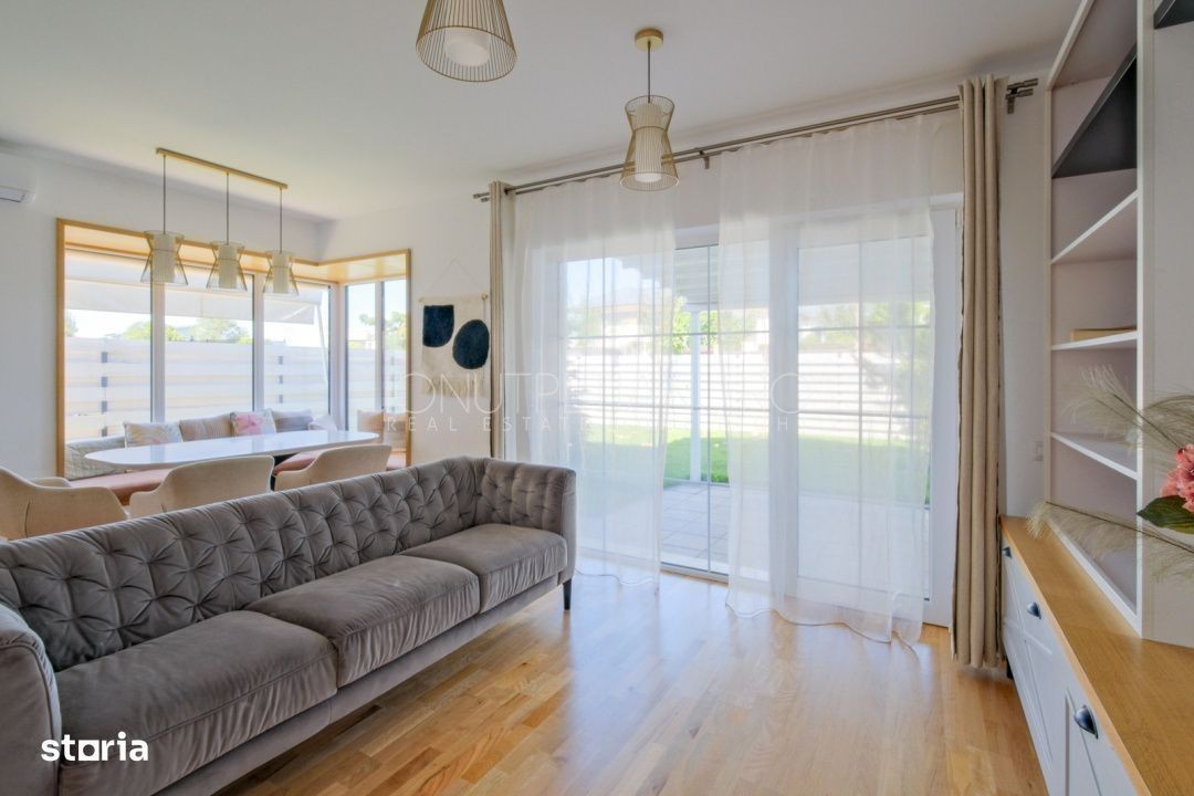 Vilă modernă și confortabilă de închiriat în Otopeni - Gata să devină „acasă” pentru tine! Preț: 1500 € + TVA • Contract minim 2 ani acestei vile dintr-o zonă liniștită din Otopeni, aproape de tot ce ai nevoie. Complet mobilată și utilată, este pregătită să îți ofere. - Living luminos, bucătărie open space complet utilată, baie de serviciu - Două dormitoare spațioase, baie modernă - Dormitor matrimonial cu baie proprie, dressing și terasă privată Parchet din lemn masiv & încălzire în pardoseală Sistem modern de ventilare - aer proaspăt mereu în casă Curte proprie cu gazon verde și pomi decorativi Terasă ideală pentru cafeaua de dimineață sau serile liniștite 2 locuri de parcare private Aproape de Lidl, Penny, Mega Image, școli, restaurante, transport public Conexiune facilă către DN1, aeroport și zone comerciale - gata mobilată & utilată, dar poți adăuga propriul tău stil pentru o vizionare și descoperă locul unde te vei simți acasă!