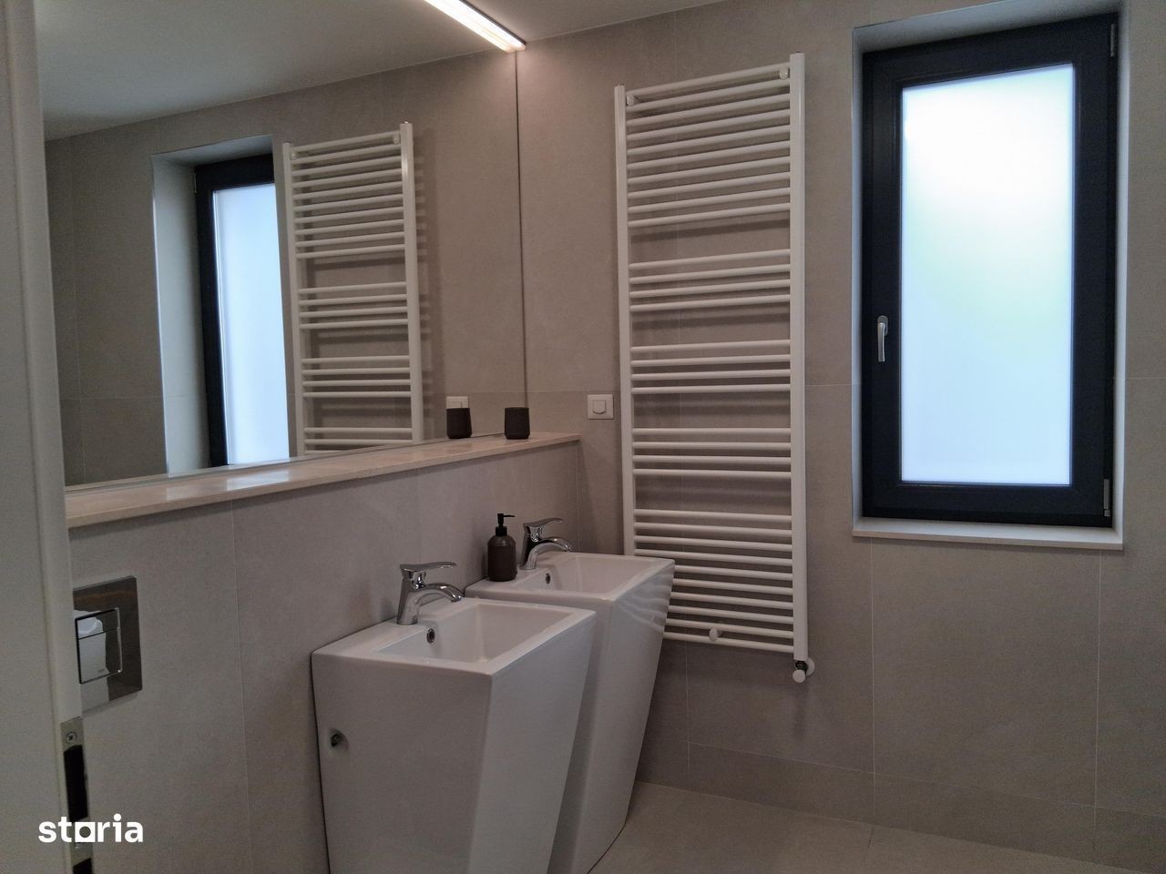 Casa P+1, curte proprie, Otopeni, la 5 minute de aeroport langa aeroportul Otopeni, pe un drum privat, se afla o casa eleganta, cu finisaje si mobilier premium, ideala pentru un stil de viata exclusivist si linistit.