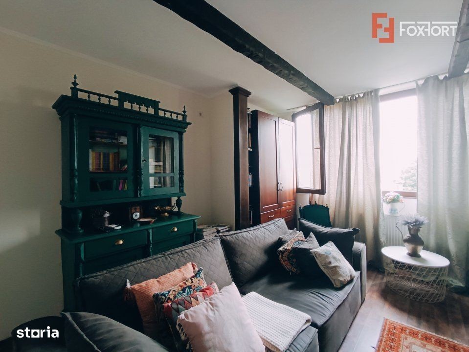 COMISION 0% Apartament vintage cu suflet, in zona Spitalului Judetean, Timisoara FOXFORT propune spre vanzare un apartament cu 3 camere la mansarda, cu o amenajare aparte. Intr-o lume in care apartamentele tind sa semene intre ele, rareori intalnesti un spatiu care sa iti spuna o poveste. Acest apartament cu 3 camere din Timisoara, zona Spitalului Judetean, este o astfel de raritate - o combinatie rafinata intre confortul contemporan si farmecul mobilierului de epoca. Un loc unde timpul pare sa incetineasca si fiecare coltisor spune o poveste. Aici, fiecare piesa are o istorie: O banca veche, ca cele din garile de altadata, ce pastreaza amintirea calatoriilor de demult. Fotolii de colectie, ce poarta nobletea unor vremuri elegante. Tablouri pictate chiar de proprietara, transformand peretii in galerii de arta personala. Si multe altele pe care le vei descoperi la vizionare. Suprafata utila: 63 mp + balcon 4 mp. Bloc: 1980 | Mansarda: 2012 | Structura: beton + caramida. Apartamentul este structurat astfel: Holul te intampina cu o banca autentica, ca cele din garile romantice de odinioara - un loc unde iti poti lasa grijile in urma si te poti pregati sa pasesti intr-o lume plina de detalii fermecatoare. Bucataria combina stilul vintage cu functionalitatea moderna: mobilier cu aer retro, culori calde, si rafturi pe care se odihnesc mici obiecte de colectie, fiecare cu povestea lui. Este un spatiu care te inspira sa gatesti incet, cu suflet. Livingul este sufletul apartamentului - aici, credentul reconditionat si fotoliile de colectie, creeaza o atmosfera de salon elegant din alte vremuri. Lumina se aseaza bland pe lemnul vechi, iar incaperea te invita la dialoguri lungi sau seri linistite cu o carte buna. Dormitorul matrimonial iti ofera o intimitate aparte, cu o atmosfera calda si linistitoare, perfecta pentru relaxare deplina. Al doilea dormitor, cu iesire in balcon, este un colt de respiro cu priveliste, ideal pentru birou, camera de oaspeti sau atelier creativ. Baia, atent amenajata in ton cu stilul intregului apartament, imbina rafinamentul cu utilitatea, pastrand armonia estetica a locuintei. Dotari si beneficii: Incalzire cu centrala proprie prin calorifere Aer conditionat Tamplarie PVC, parchet si gresie Usi interioare din lemn Se vinde complet mobilat si utilat (cuptor, hota, aragaz, frigider cu congelator, masina de spalat rufe) Pret: 97.990 € COMISION 0% cumparator, Modalitate de plata: surse proprii sau credit bancar Acest apartament nu este doar o locuinta, ci o colectie de povesti, emotii si obiecte rare - un loc unde fiecare camera are personalitatea ei si fiecare detaliu te face sa zambesti. Este pentru cei care cauta mai mult decat o simpla locuinta, acest apartament este o colectie de povesti, frumos impachetate intr-un spatiu luminos si primitor. Te invit sa simti energia si farmecul acestei locuinte la o vizionare live. Te vei indragosti pe loc Suna acum pentru vizionare si fii primul care descopera farmecul acestui apartament unic. ID intern: V8608
