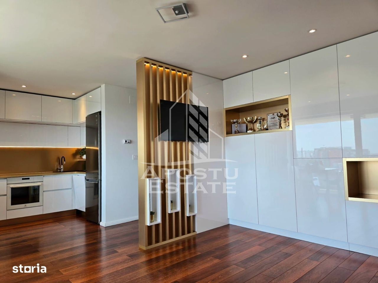 Apostu Estate propune spre vanzare un apartament cu 2 camere, situat la etaj intermediar (etajul 7 din 10), in zona Aradului, una dintre cele mai cautate si bine conectate zone din Timisoara. Locatia ofera acces rapid la mijloace de transport in comun, scoli, gradinite, farmacii si centre medicale importante. La doar 400 m de Spitalul Premiere si 2.2 km de Iulius Town. Apartamentul se remarca prin finisaje de calitate superioara, dotari moderne si mobilier realizat la comanda, fiind ideal atat pentru locuit, cat si pentru investitie cu randament foarte bun. Compartimentare: hol de acces cu spatii de depozitare, baie, dormitor, living open-space cu bucataria (bucătăria se poate inchide), balcon deschis, generos. Detalii tehnice si dotari: Incalzire in pardoseala prin centrala proprie pe gaz (revizii la zi) Parchet din lemn masiv Usi interioare Porta Doors, rezistente si de calitate Sistem de climatizare cu purificare a aerului - ideal pentru perioade de viroze sau persoane cu alergii Mobilier executat la comanda, inclusiv riflaje decorative Bucatarie complet echipata cu sisteme Hafele si Blum, inchidere soft, chiuveta ceramica mata, plita cu hota incorporabila puternica, masina de spalat vase Gorenje (17 seturi), cuptor multifunctional cu curatare automata si sticla detasabila Baia este finisata cu materiale premium: Marmura si gresie Tempini pe tot peretele si podeaua Obiecte sanitare Geberit Baterie de cada tip cascada Dormitorul include: Pat king-size Divani&Sofa cu saltea Timflex gama premium Dulap generos pe tot peretele, usi glisante personalizate Draperie blackout si plase glisante la geam Tablouri pictate manual in ulei (inclusiv in living) Finisaje cu granit pe casa scarii si in lifturi. Blocul dispune de 2 lifturi. Lqocul de parcare suprateran este inclus in pretul de listare (CF separat) si pozitionat convenabil langa intrarea in bloc. Cheltuieli comune (administratie, intretinere lifturi, mentenanta etc.) : aprox. 187 lei/persoana/luna. Apartament cu potential excelent atat pentru rezidenta, cat si ca investitie. Se vinde complet mobilat si utilat, fiind gata pentru mutare. Oferim consultanta bancara gratuita prin partenerii nostri. Te asteptam cu drag la o vizionare!