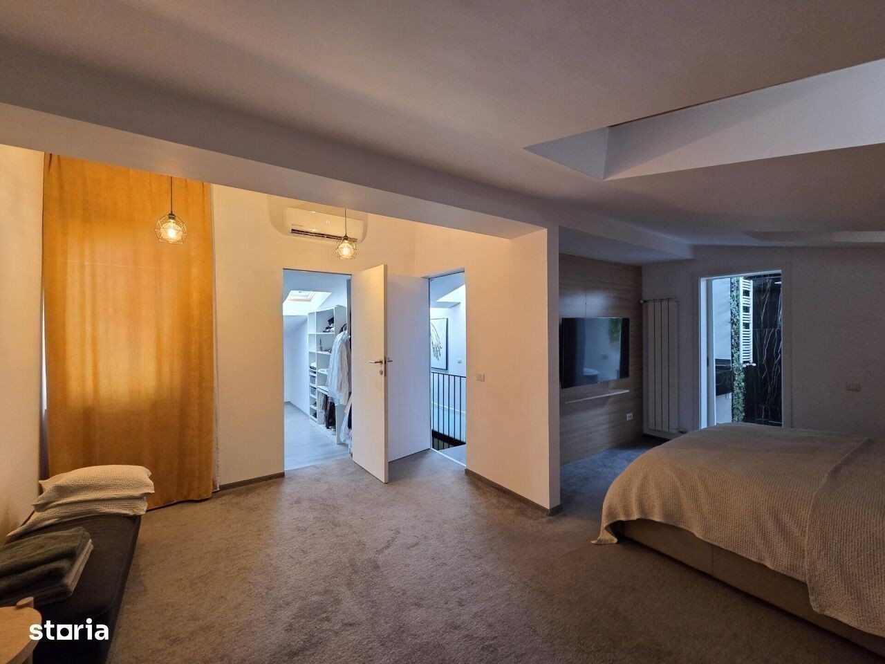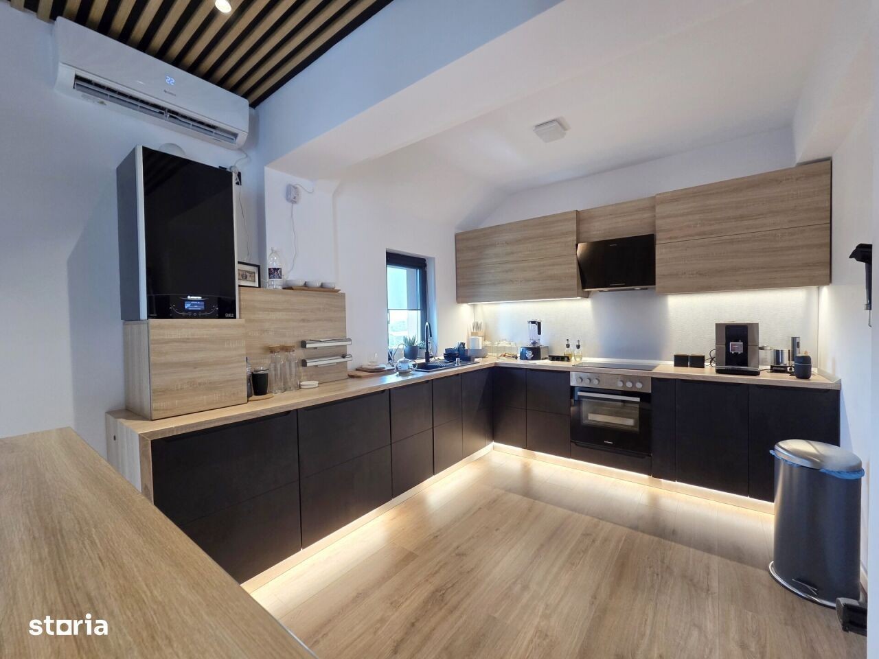 Estate Network va ofera spre vanzare un apartament de tip duplex, compus din 3 camere, situat la ultimele 2 niveluri ale unui imobil de tip P+4, finalizat in anul 2021, desfasurat pe o suprafata totala utila de 150 mp. La nivelul inferior, regasim zona de living, bucataria deschisa-separata, baie si 2 balcoane. La nivelul superior, regasim 2 dormitoare dotate cu baie proprie si dressing. Incalzirea este realizata prin intermediul unei centrale termice proprii, dotata cu sistem de incalzire prin pardoseala la nivelul inferior si cu sistem de incalzire cu calorifere la nivelul superior. Racirea este realizata prin intermediul a 3 aparate de aer conditionat. Atat sistemul de incalzire cat si cel de racire pot fi controlate de la distanta. Dotat cu gratar exterior.