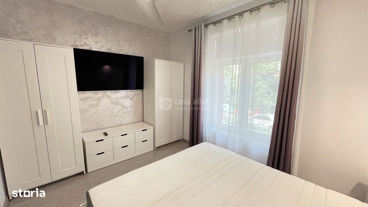 casa-alba.ro - din 2001 Impartim bucuria de a fi acasa! Agentia Imobiliara CASA ALBA va prezinta spre inchiriere un apartament cu 2 camere mobilat si utilat premium, RENOVAT COMPLET, situat intr-un imobil tip vila cu doar patru apartamente din zona Podul de Fier, ideal pentru cei care isi doresc acces rapid la toate facilitatile orasului. Locuinta este dotata cu centrala termica proprie, incalzire in pardoseala, oferind confort pe tot parcursul anului. Compartimentarea este practica si functionala, spatiile fiind luminoase si bine intretinute. Prezinta inclusiv dressing, geam de aerisire la baie, balcon inchis cu geam termopan. Se afla in imediata apropiere a magazinelor, restaurante, mijloace de transport si institutii importante. Disponibil imediat. Pretul solicitat pentru inchirierea acestui apartament este de 550 euro/ luna, cu plata chiriei in avans pentru prima luna contractuala si contravaloarea unei luni de chirie cu titlu de garantie, ce se returneaza la finalul contractului de inchiriere. Sunati acum pentru vizionare! Pentru mai multe detalii si oferte, contactati consultantul nostru imobiliar, Ioana Hojda la numarul