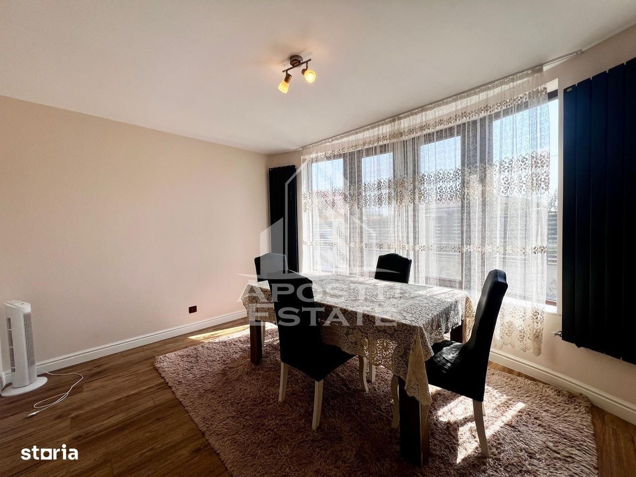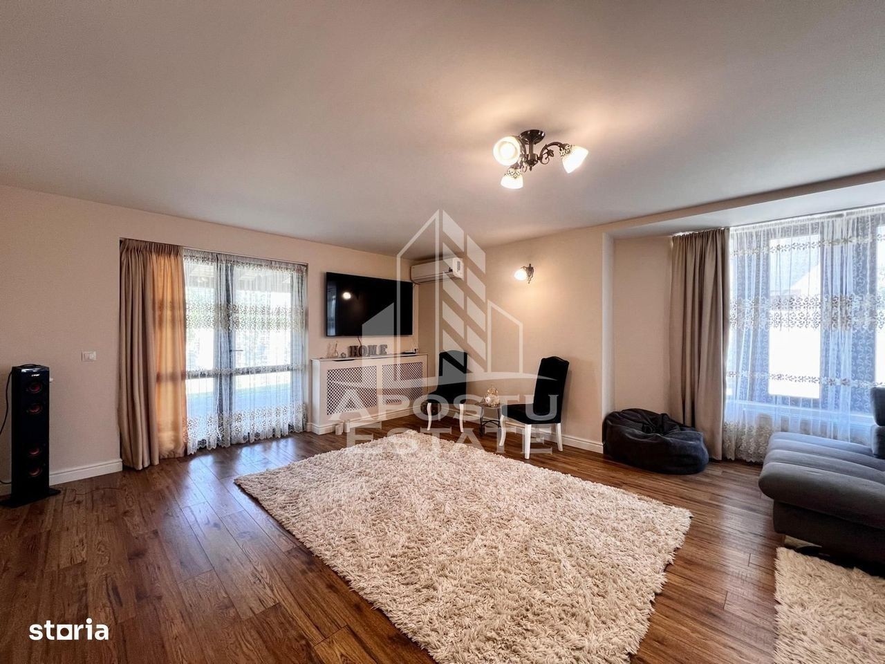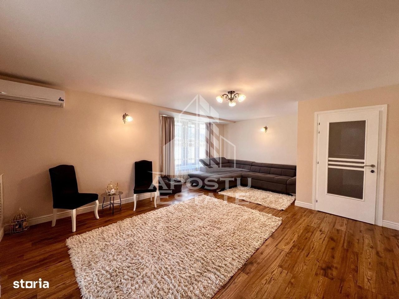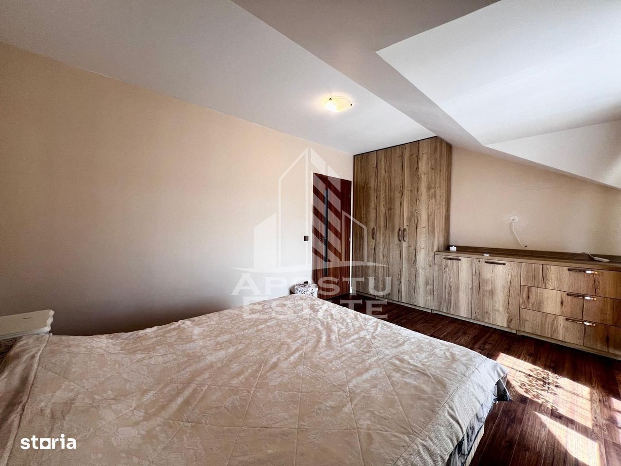 APOSTU ESTATE va propune spre inchiriere o casa cu 4 camere si 2 bai, in zona Mosnita Noua Locuința în regim de P+1 se distinge prin aspectul modern și suprafața generoasă (180 mp utili si 550 mp teren) Confortul termic este realizat prin intermediul centralei termice cu incalzire prin calorifere si al aparatului de aer conditionat pozitionat inteligent pentru a racori toata casa. Imobilul este impratit astfel: La parter: - hol acces - baie cu dus si geam - living spatios cu iesire directa pe terasa - bucătărie inchisa cu loc de luat masa - dressing La etaj: - 1 dormitor cu pat matrimonial si iesire directa pe balcon - 1 dormitor cu pat matrimonial - o camera cu canapea extensibila - o baie cu cada tip scoica Exterior: - spatiu de relaxare - terasa - gradina cu spatiu verde - locuri de parcare ID intern: CP2666973