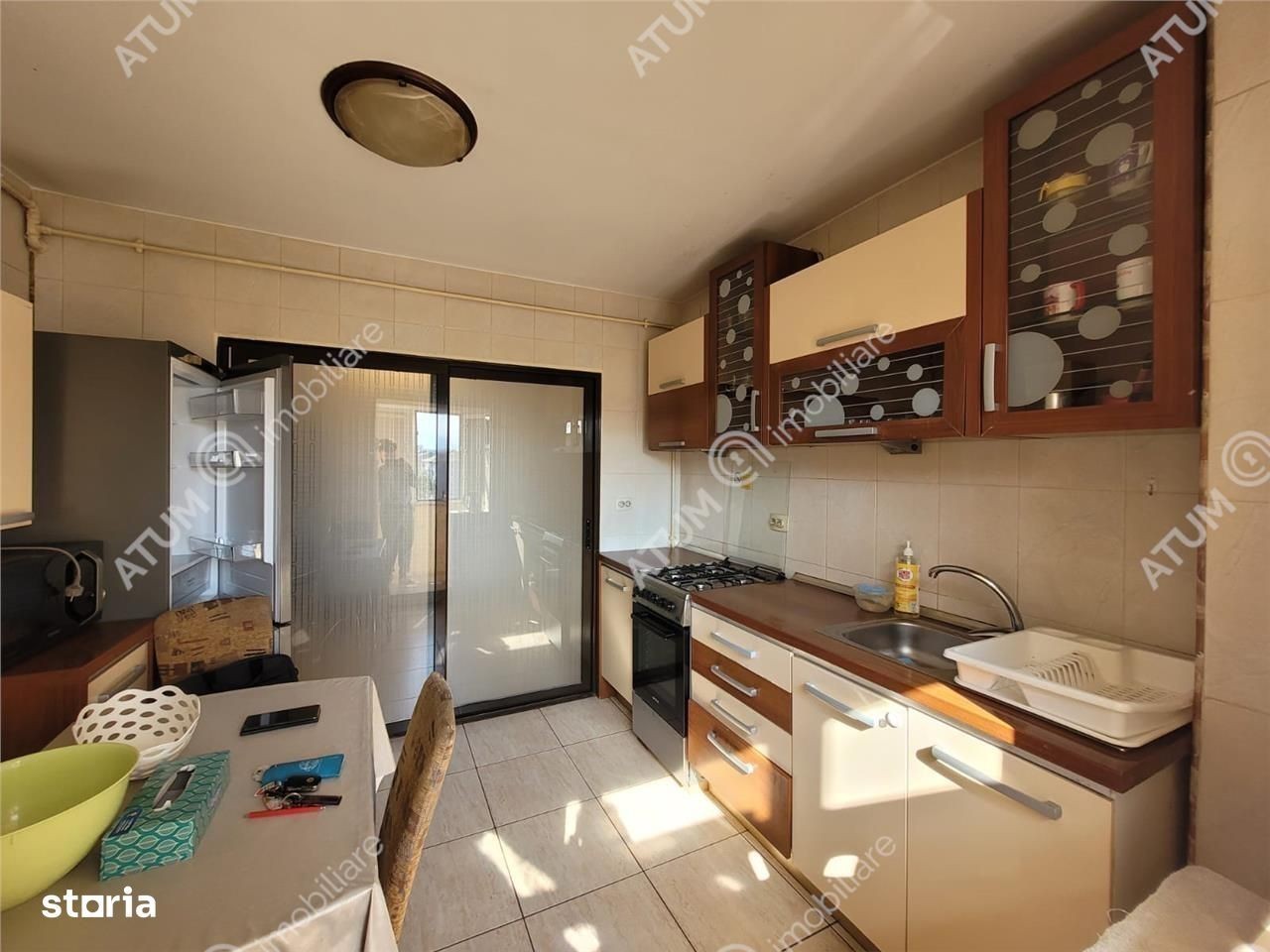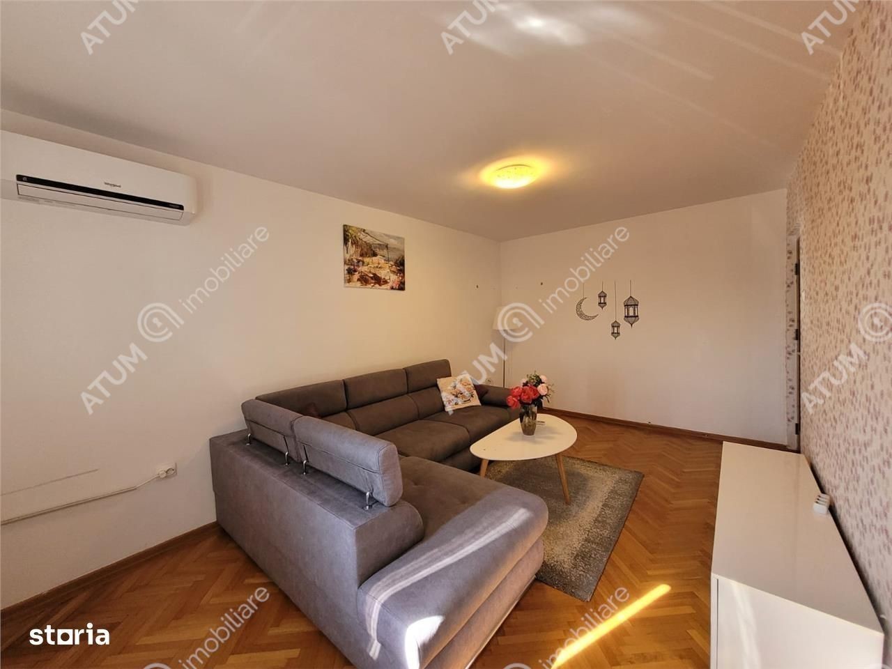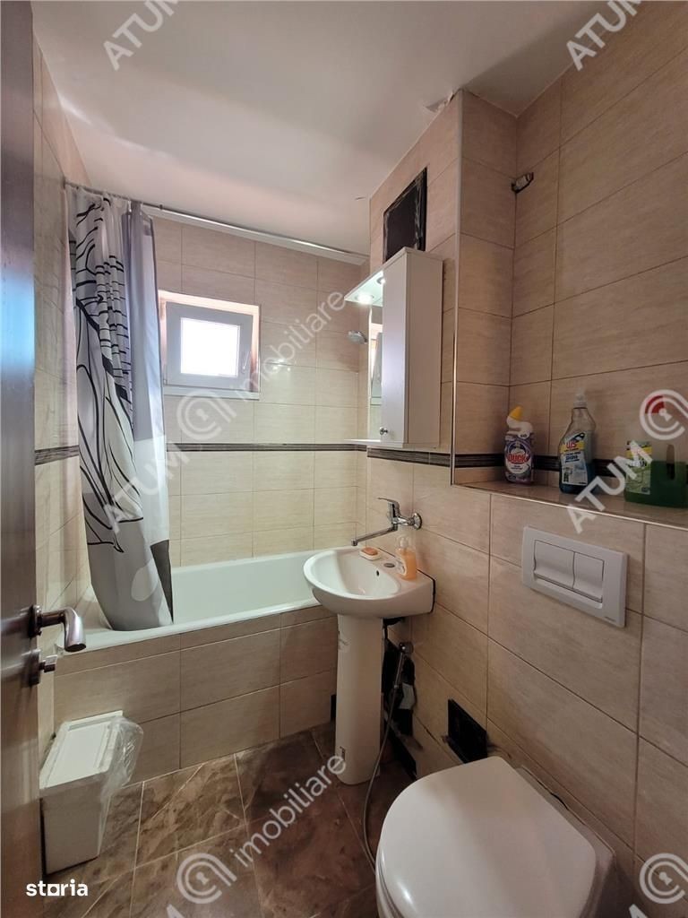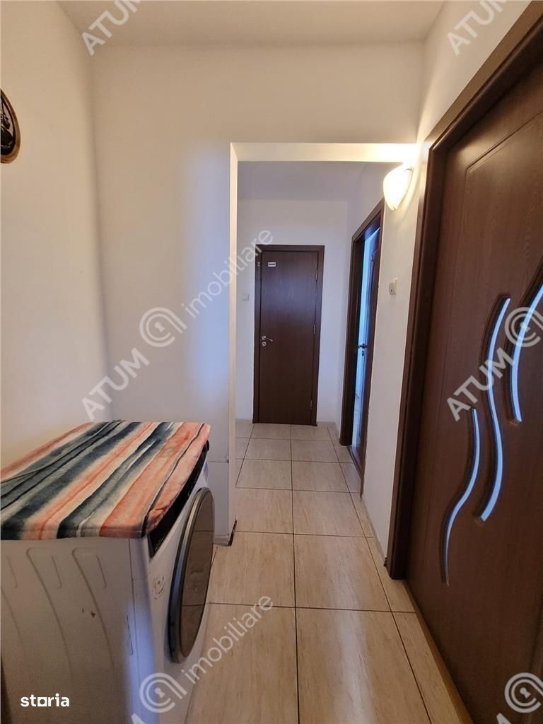 Se ofera spre inchiriere un apartament spatios cu 3 camere, situat la etajul intermediar 5 din 10, intr-un bloc cu lift din zona Vasile Aaron, una dintre cele mai bine cotate zone rezidentiale ale orasului Sibiu. Apartamentul are o suprafata utila de 70 mp, fiind ideal compartimentat decomandat astfel: living luminos, doua dormitoare, bucatarie separata inchisa, baie, debara, doua holuri si un balcon. Compartimentarea este practica, oferind intimitate si confort pentru o familie sau un cuplu. Proprietatatea este dotata cu geamuri cu tamplarie din PVC si sticla termopan, usa de acces metalica, usi interioare din lemn, centrala proprie pe gaz cu incalzire prin calorifere, este montat aparat de aer conditionat in living, podeaua este placata cu parchet si gresie, peretii placati cu faianta dar si tapet pentru o pata de culoare in living. Locuinta este mobilata si utilata complet avand bucataria dotata cu aragaz, frigider, cuptor cu microunde, dispune de masina de spalat, aspirator, cablu TV si internet. Imobilul este bine intretinut, beneficiaza de izolatie termica si are orientare favorabila Sud-Est, ceea ce asigura lumina naturala pe tot parcursul zilei. Blocul este dotat cu lift si are acces usor catre mijloacele de transport in comun, magazine, scoli si alte puncte de interes din zona. Valoarea de inchiriere a apartamentului este de 500 euro + o garantie. ID intern 2893