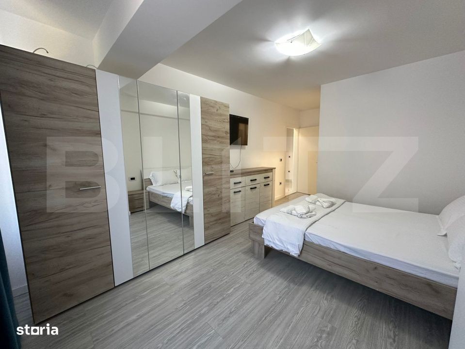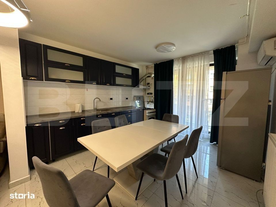 Blitz va propune spre inchiriere un apartament modern cu 3 camere, pozitionat la etajul 1 al unui bloc cu 6 niveluri. Imobilul este compartimentat dupa cum urmeaza: Hol, Living open-space cu bucataria, 2 dormitoare dintre care unul cu baie proprie, spatiu pentru depozitare, baie si un balcon deschis. De asemenea, acesta dispune de centrala termica, aparat de aer conditionat, dar si de un loc de parcare privat la parcarea subterana. Acesta se preda mobilat si utilat pentru tot confortul viitorilor chiriasi! Pentru mai multe detalii, nu ezitati sa ne contactati!