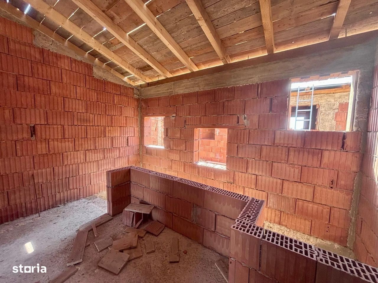 REDUCERE DE PRET 15.000 EURO! District Real Estate va prezinta spre vanzare un duplex nou cu 4 camere, situat in Ghiroda, in cartier Slavik. Casa se desfasoara pe o suprafata utila de 116 mp și este amplasata pe un teren de 300mp. Confortul termic se realizeaza prin pardoseala, cu ajutorul centralei proprii pe gaz. Compartimentarea se prezinta astfel: PARTER: - Hol intrare - Living open-space cu bucataria - Dormitor/Birou - Baie cu dus - Camera tehnica - Terasa 12mp ETAJ: - 2 Dormitoare, fiecare cu baie si balcon propriu Mai multe detalii: - Caramida WIENERBERGER 25 - Tamplarie Tripan SALAMANDER 76 - Tigla de beton BRAMAC gri antracit - Izolatie exterioara cu polistiren 15cm - Curte amenajata si sistem de irigatie - Bugete generoase pentru finisaje: 80 lei/mp parchet, 100 lei/mp gresie/faianta, 1500 lei/usa Pretul este de 210.000 euro la cheie, sau 165.000 euro cu interiorul la rosu. Nu se percepe comision! Oferim consultanta si solutii financiare in vederea obtinerii unui credit imobiliar avantajos, cu ajutorul colaboratorilor nostri. Pentru vizionari si alte detalii va stam la dispozitie.