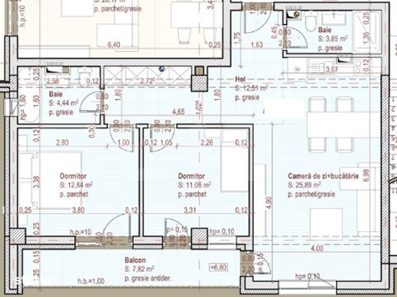 Apartament 3 camere, 71 mp, 17 mp terasa, etaj intermediar, zona Terra