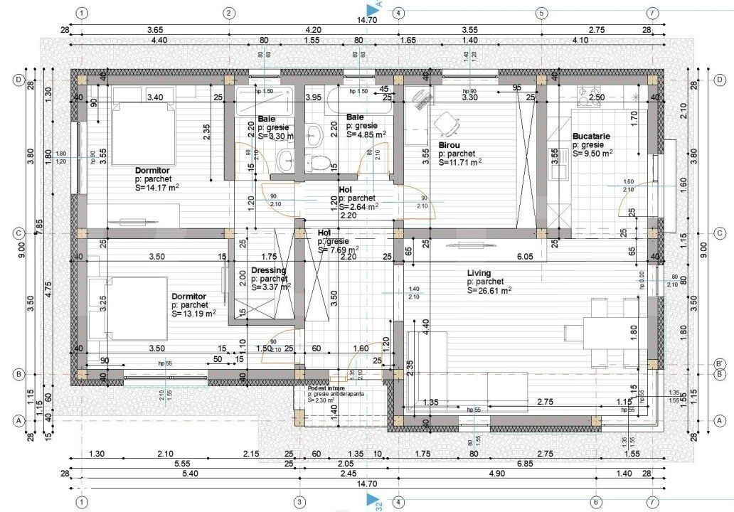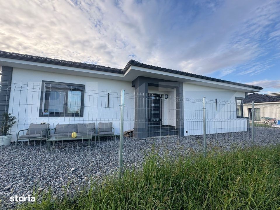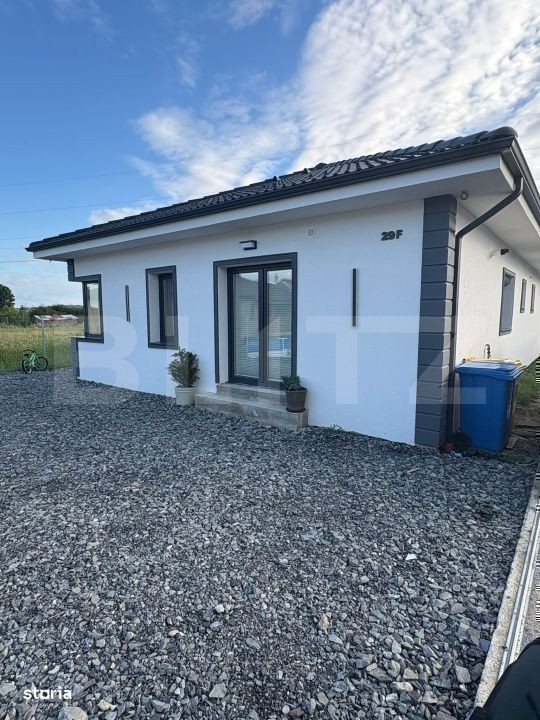 Blitz propune spre vânzare o casă pe un singur nivel, cu suprafața utilă de 97 mp, amplasată pe un teren de 650 mp. Locuința este compartimentată inteligent și dispune de două dormitoare, living cu bucătărie open-space, două băi și dressing. Curtea generoasă oferă posibilitatea amenajării unei grădini, a unei terase sau a unei zone de relaxare, iar compartimentarea pe un singur nivel asigură confort și accesibilitate sporită. Proprietatea este ideală pentru o familie care își dorește spațiu, funcționalitate și un cadru liniștit.