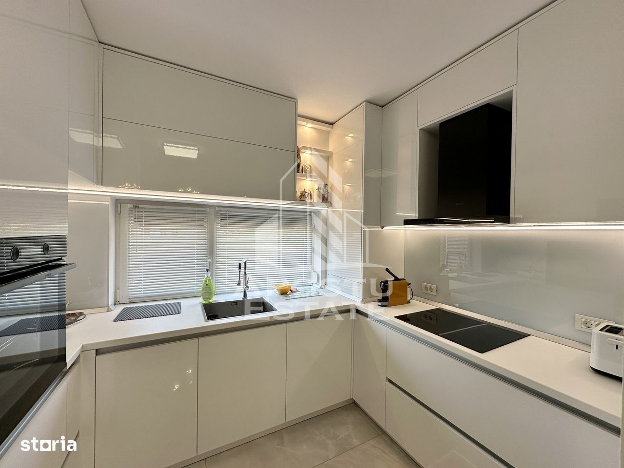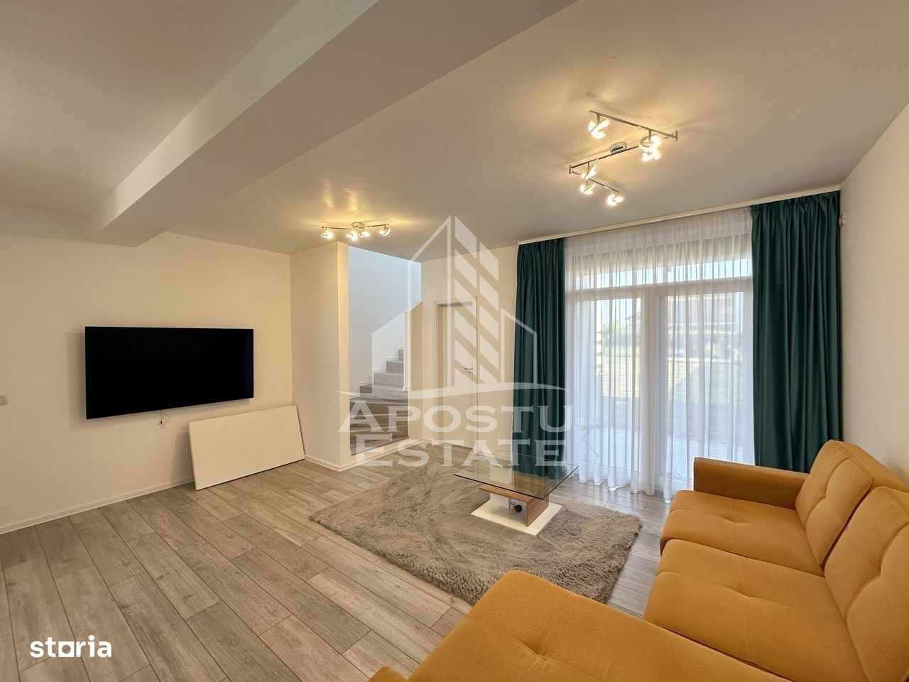 APOSTU ESTATE va propune spre vanzare o locuinta deosebita, tip triplex, situata pe partea exterioara a ansamblului, in Dumbravita, intr-o zona linistita si bine pozitionata, aproape de Giarmata Vii cu acces auto. Caracteristici: Regim de inaltime: Parter + Etaj Suprafata utila: 95 mp Suprafata teren: 444 mp Se vinde partial mobilata si utilata, gata sa ofere confortul si functionalitatea unei locuinte primitoare. Compartimentare: Parter: Hol de acces cu dressing Living spatios, cu bucatarie deschisa si zona de dining Birou - ideal pentru lucru de acasa sau camera suplimentara Baie moderna Terasa acoperita, perfecta pentru momente de relaxare Etaj: Hol cu dressing 2 dormitoare luminoase Baie cu cada, pentru un plus de confort Detalii tehnice: Incalzire in pardoseala; Toate utilitatile disponibile; Rulouri electrice; Acces auto in curta; Oferim consultanta personalizata si solutii financiare prin colaboratorii nostri, pentru a face procesul de achizitie cat mai simplu si rapid. Va invitam cu drag la o vizionare! CP2668829