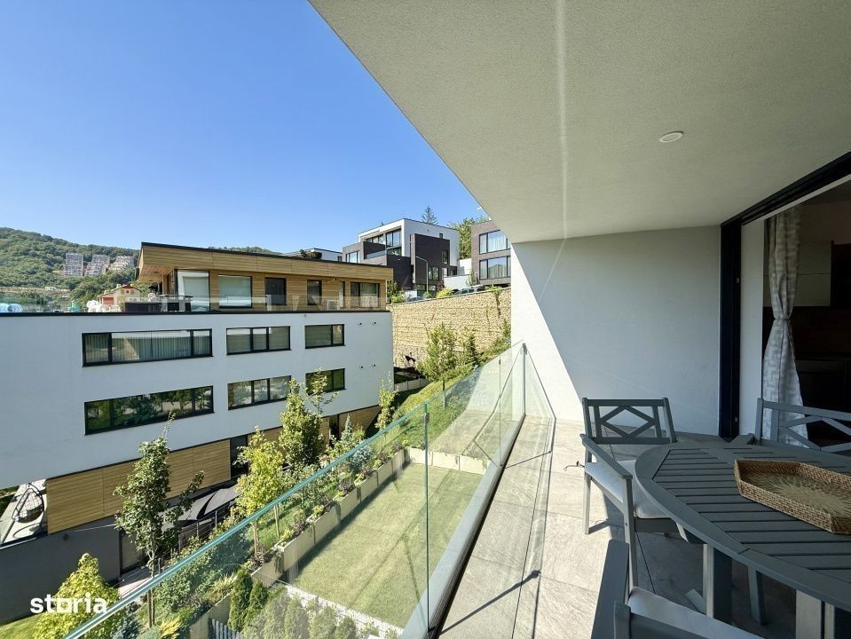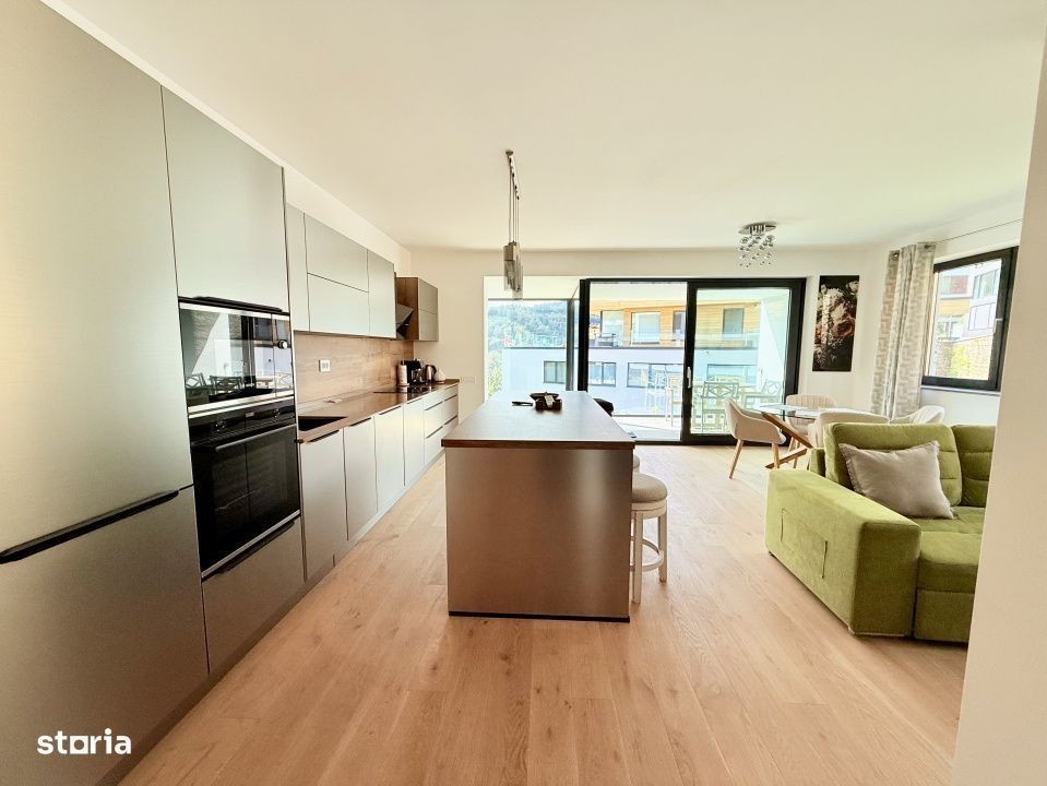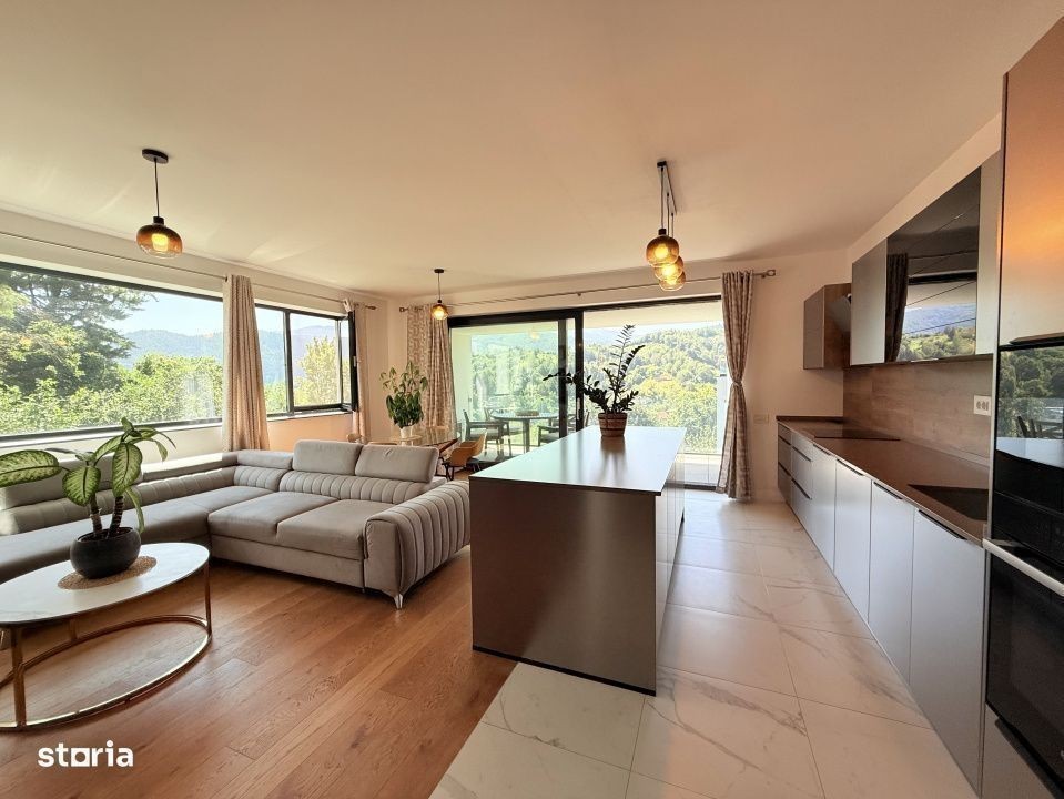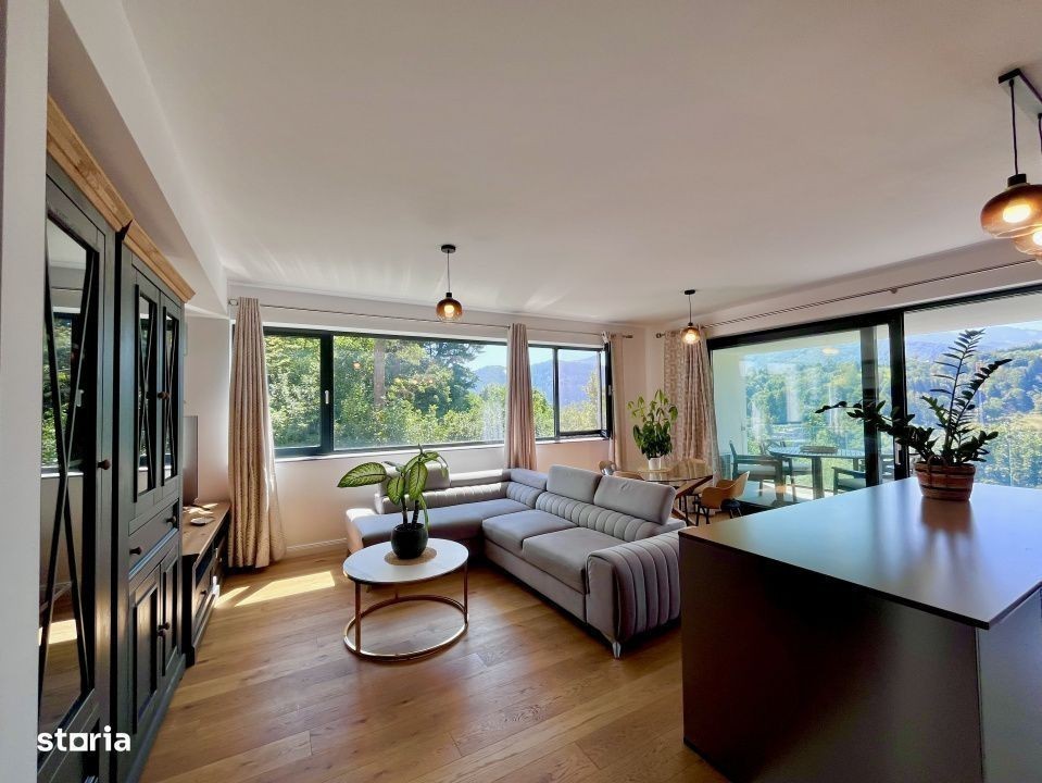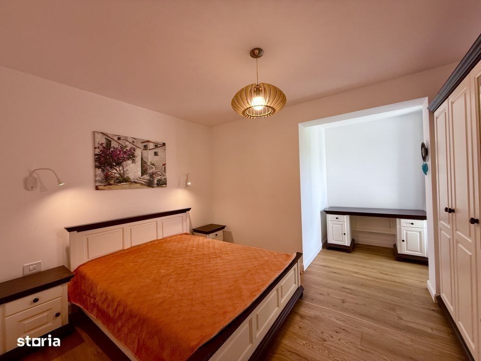 Stil de viata exclusivist in complexul rezidential Stejeris, situat pe Drumul Poienii, cu acces rapid atat catre Centrul Istoric al Brasovului, cat si catre Poiana Brasov. Locatie deosebita - liniste, natura si priveliste de poveste, la doar cativa pasi de toate atractiile Brasovului. Proprietatea se remarca prin compartimentare practica, suprafete vitrate ample si finisaje de inalta calitate. Complet mobilat si utilat, pregatit pentru mutare imediata,are structurata decomandata, fiind dispus astfel: - Living spatios cu bucatarie open-space - Colt de lucru perfect pentru biroul tau - Doua dormitoare confortabile - Baie principala si grup sanitar - Hol generos - Terasa panoramica cu priveliste directa catre Masivul Postavarul si catre Calea Poienii Facilitati si beneficii: - Comunitate cu acces controlat, formata din 8 vile cu regim redus de inaltime - Loc de parcare inclus - Spatii verzi private si comune, alei interioare - Gradina comuna cu zona de relaxare, loc de joaca pentru copii si pasarela panoramica cu vedere spectaculoasa asupra orasului - Peste 50% din teren acoperit de vegetatie Conditii de inchiriere: - Garantie: echivalentul a doua chirii - Utilitatile se platesc separat, in functie de consum - Comision agentie: 50% + TVA din contravaloarea chiriei pe o luna Contacteaza-ne acum pentru mai multe informatii sau pentru a programa o vizionare a acestui apartament confortabil si bine situat!