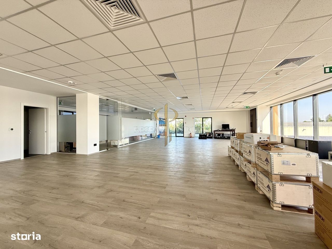 Vă propunem spre închiriere un spațiu comercial cu o suprafață generoasă de 297 mp, situat la etajul 1 al unei clădiri moderne, dotată cu lift. Spațiul beneficiază de: • fațadă integral vitrată și văd la stradă, asigurând vizibilitate excelentă; • bucătărie și baie proprie, pentru confortul angajaților și al clienților; • terasă de 100 mp, ideală pentru zonă de relaxare sau activități conexe; • locuri de parcare; • posibilitate de închiriere integrală (297 mp) sau parțială (aprox. 150 mp); • compartimentare flexibilă, potrivită pentru diverse activități comerciale sau de servicii. Localizarea în Giroc, într-o zonă accesibilă și vizibilă, face ca acest spațiu să fie ideal pentru birouri, showroom, cabinet medical, salon sau alte activități comerciale. Suprafață utilă: 297 mp (sau jumătate din suprafață) Terasă: 100 mp Etaj: 1 Dotări: lift, bucătărie, baie, fațadă vitrată, parcare. Pentru mai multe informații și detalii suplimentare, vă stăm la dispoziție.