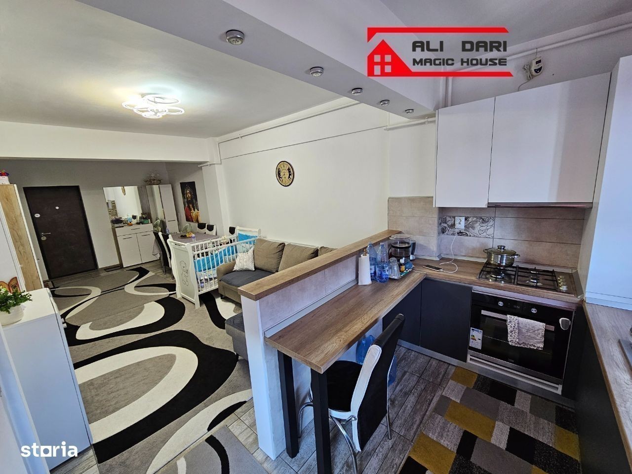 * Vă recomandăm spre vânzare un apartament finisat, mobilat și utilat complet de 50 mp + 6 mp balcon * Situat la etajul 3 * Compartimentare: