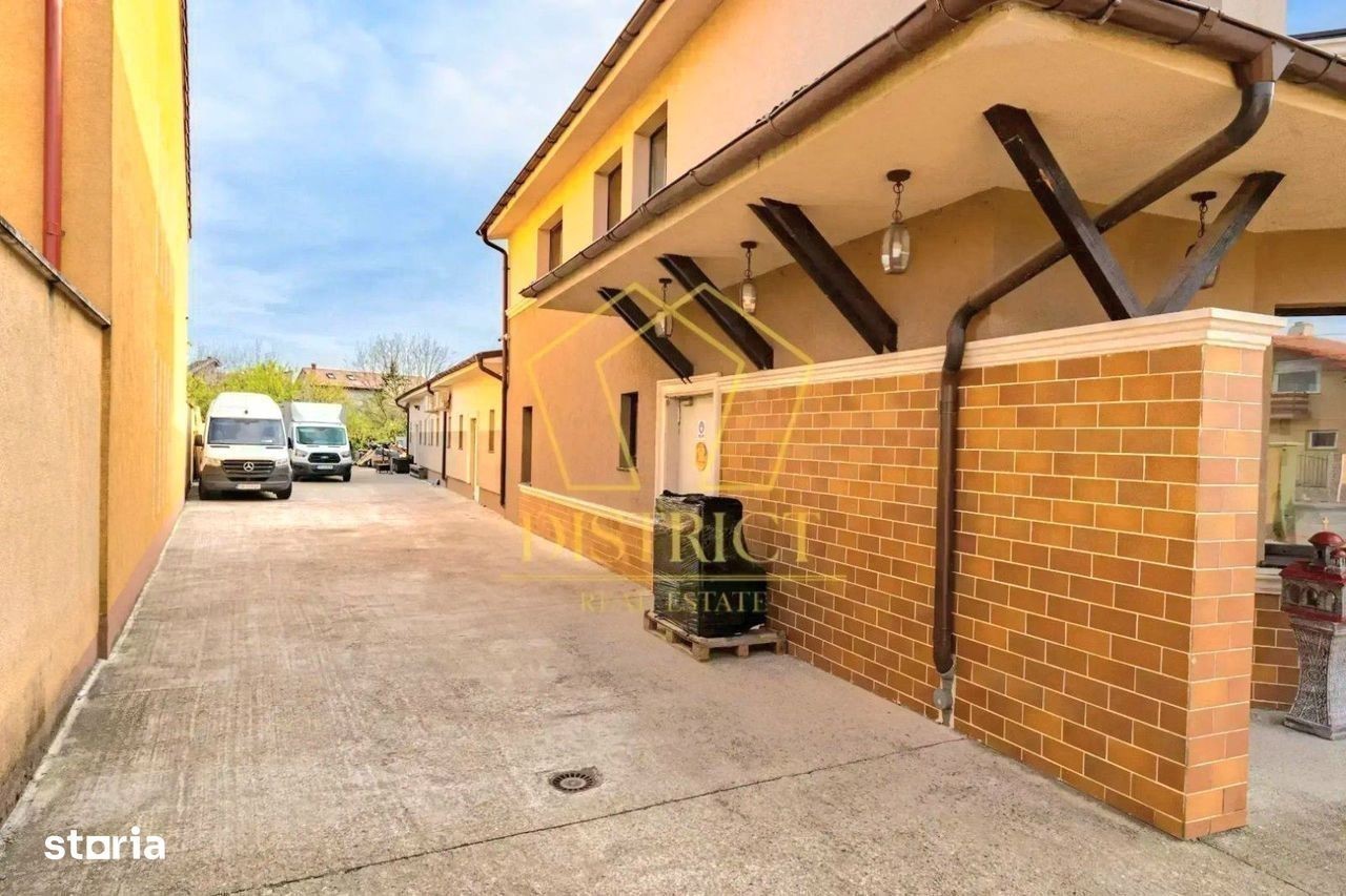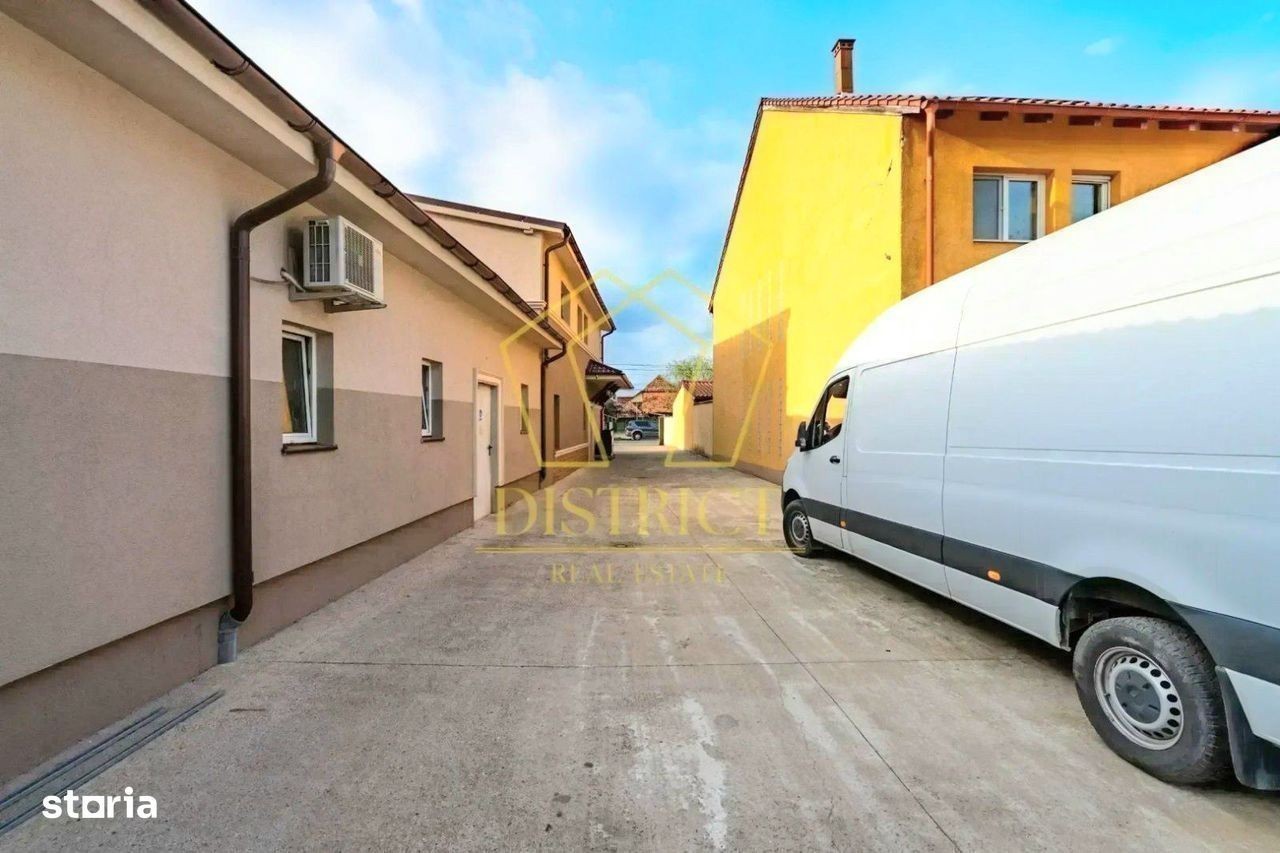 District Real Estate va propune spre inchiriere în exclusivitate o cladire de birouri cu depozit și regim de înălțime P+M, situată în zona Mehala pe strada Moise Doboșan. Clădirea este pretabilă pentru activități comerciale, clinică, afterschool, showroom, azil de batrani, spatiu de birouri si depozit pentru vânzari cu birouri. Aceasta se desfășoară pe o suprafață utilă totală de 663mp și dispune de un teren de 1464mp cu front stradal 20 ml. Structura de rezistență este din beton și permite extinderea mansardei și către spatele clădirii unde se află depozitul. A beneficiat de o renovare completă pe exterior in anul 2017, ce include izolarea termică, termopane noi și acoperiș refăcut. Accesul în curtea betonată se face prin poarta principală, unde se regăsesc mai mult de 15 locuri de parcare. Pereții exteriori și interiori principali sunt din cărămidă, iar cei secundari pentru crearea birourilor sunt din rigips, ceea ce vă permite să recomparimentați sau să îmbunătățiți spațiul cu usurință, pe bunul plac. Confortul termic se realizează prin 3 centrale proprii (parter, mansardă și depozit) și prin sistemul VRF de climatizare prin tavan cu unitate exterioară. Scările pentru urcarea la etaj sunt situate în apropiere de intrarea principală și oferă acces ușor către nivelul superior. Înăuntru se regăsesc finisaje cu gresie, parchet laminat, beton în sălile de depozitare, o bucătărie funcțională și 3 grupuri sanitare. Pretul de inchiriere este de 4500 euro+ 4500 euro garantie. Contractul de inchiriere se face pe minim 2 ani. Pentru mai multe informații și vizionarea proprietății vă stăm la dispoziție.