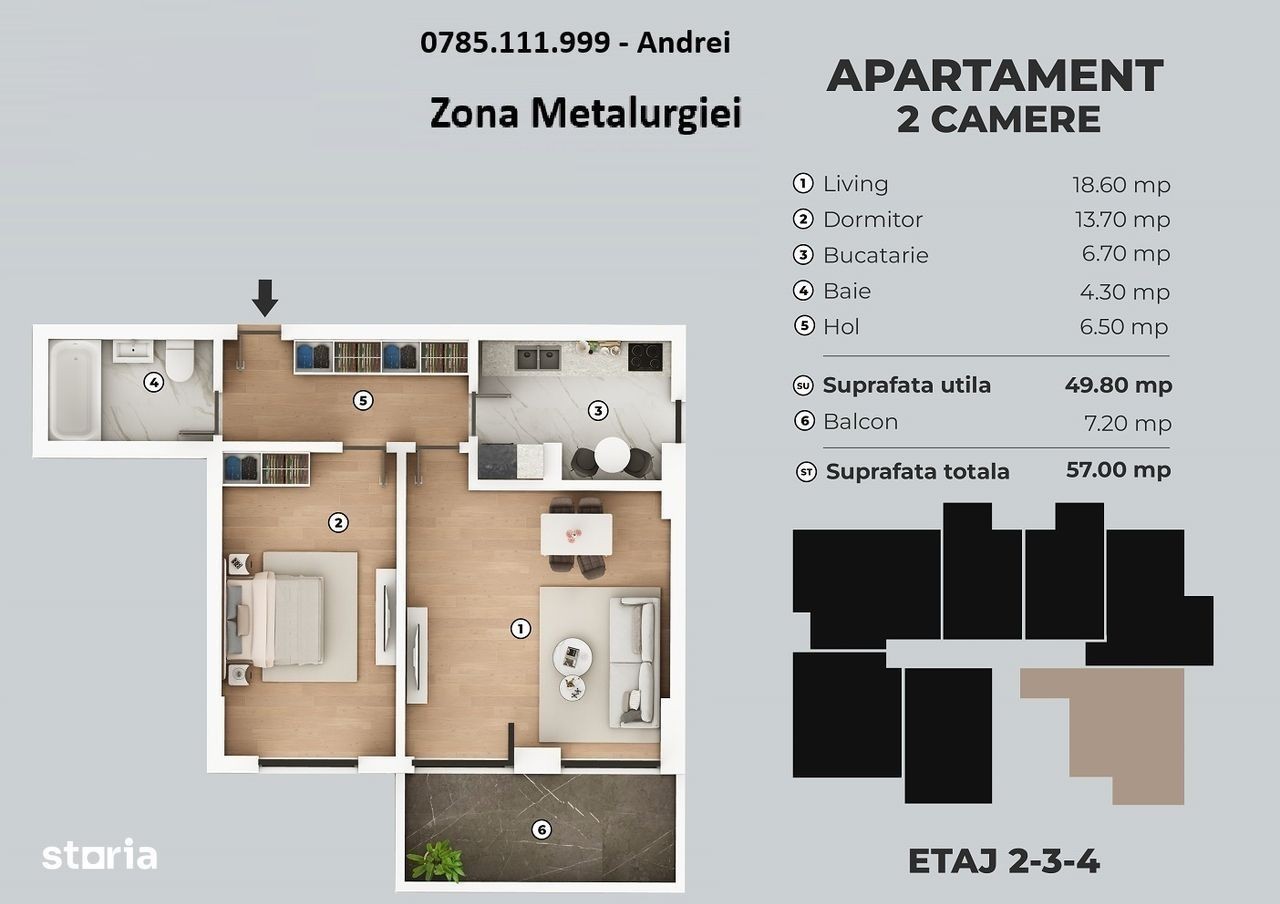 Berceni Metalurgiei - 2 cam 60mp - mutare rapida Va oferim spre vanzare apartamente cu 2 camere finalizare rapida, in zona Metalurgiei Carrefour Grand Arena, intr-un imobil P+7.