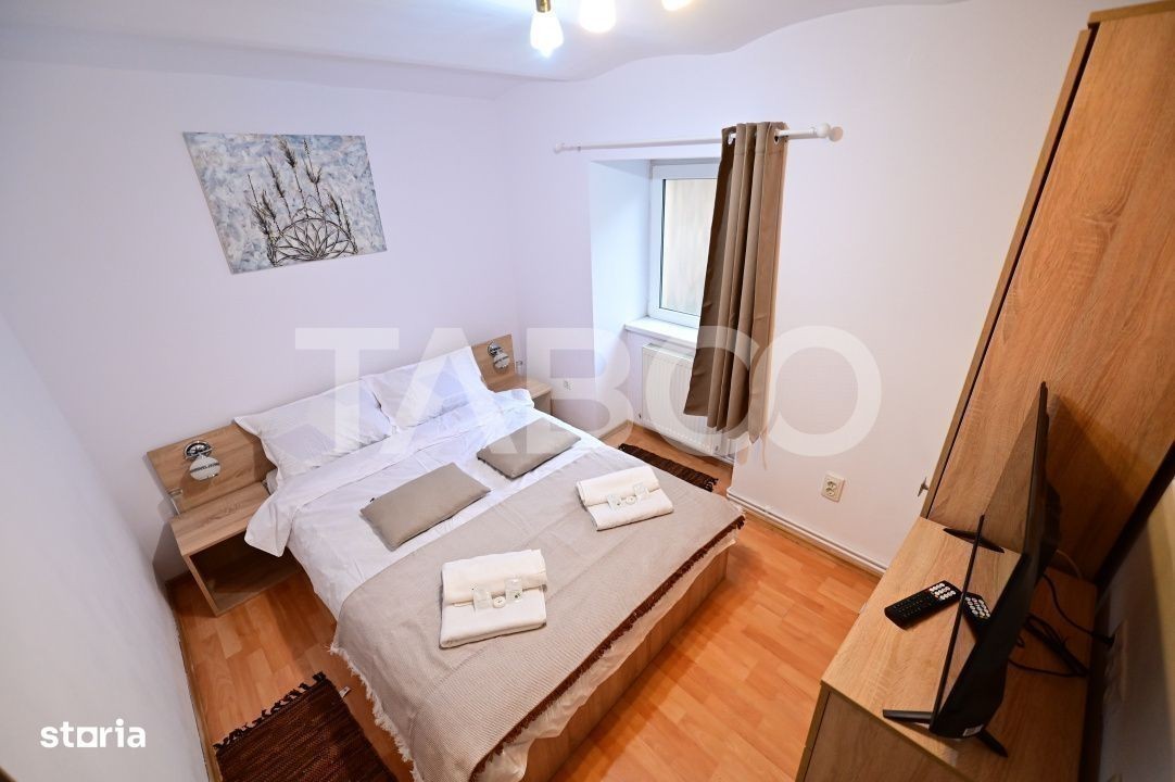 Apartament 3 camere de inchiriat, decomandat, 50 mp, zona Centrul Istoric, Sibiu. Iti doresti sa locuiesti in cea mai frumoasa zona a Sibiului unde sa te simti confortabil si relaxat si sa ai acces facil la magazine, institutii publice, institutii bancare, scoli, gradinite, zone verzi si multe alte puncte de interes, fara a mai fi nevoit sa folosesti masina!? Acest apartament este ideal pentru orice tip de familie moderna, fiind utilat complet pentru a beneficia de un trai confortabil pe termen lung si amplasat intr-o curte extrem de linistita in apropiere de Piata Mare! • Amplasat la o distanta de doar 5 minute de mers pe jos de Facultatea de Medicina si Promenada Mall • Pivnita • Pretabil investitie sigura • Locatie ultracentrala TABOO Imobiliare propune un apartament de inchiriat cu 3 camere, decomandat, situat in localitatea Sibiu, zona Centrul Istoric, aflat la Parter intr -un imobil tip casa/vila cu regim de inaltime pe Parter + 1 Etaje; anul constructiei 1940, structura caramida. Suprafata utila de 50 mp + terasa de 8 mp. • Hol; • Bucatarie mobilata si utilata; • Baie cu geam de aerisire; • Living; • 2 dormitoare • Camara; • Usa intrare: pvc; • Usi interioare: celulare, pvc; • Tamplarie ferestre: pvc, termopan; • Pereti: vopsea lavabila, faianta; • Podele: parchet, gresie. • Bucatarie: mobilata, utilata; • Mobilat: complet; • Utilitati: curent electric, apa, canalizare, gaz, catv, fibra optica; • Izolatii: exterior; • Contorizare: apometre, contor gaz, contor curent electric, contorizare separata; • Caracteristici casa/vila: supraveghere video, acoperis, curte comuna, senzor de fum. Apartamentul se inchiriaza mobilat si utilat cu: plita electrica, cuptor, hota, masina de spalat rufe, masina de spalat vase, frigider cu congelator, cuptor cu microunde, espressor de cafea, fierbator, TV in fiecare dormitor si in living; Incalzirea se realizeaza prin centrala proprie si calorifere. Pentru a se inchiria acest apartament se achita proprietarului chiria + o luna garantie. Pret: 550€ Sună-ne acum și află detalii despre această proprietate de inchiriat din Sibiu, dar și despre alte proprietăți potrivite pentru tine.