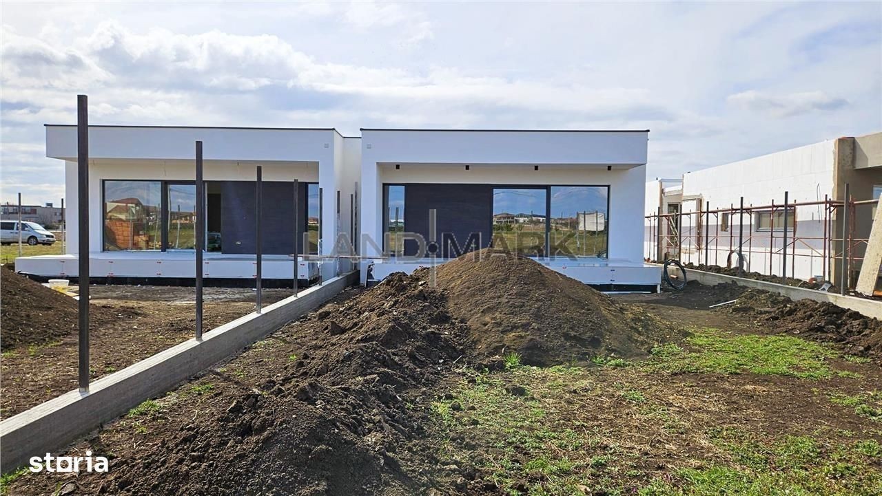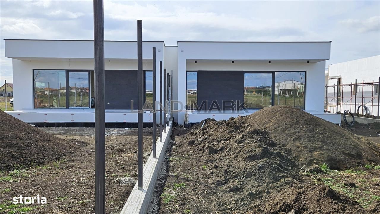 LANDMARK ofera spre vanzare, COMISION 0%, casa duplex pe parter, stil minimalist, cu teren generos in DUMBRAVITA, str Ion Creanga - Schubert fiind compartimentat in felul urmator: hol acces, dormitor matrimonial cu baie proprie, 2 dormitoare, camera tehnica, baie si o zona openspace de 35 mp care deserveste livingul si bucataria cu iesire pe o terasa acoperita. Suprafata utila a casei este de 103 mp iar terenul este de 435 mp. Proiectul este foarte frumos si bine realizat cu curte interioara, iluminator, inaltimea camerelor este de 3 m iar incalzirea se realizeaza prin pardoseala si centrala pe gaz. Acoperisul tip terasa foarte bine hidroizolat si izolat cu polistiren de 30 cm, peretele despartitor este realizat din 2 ziduri separate si polistiren de 10 cm intre ele. Imobilul este in curs de finisare (stare actuala ca in poze) si se afla in apropiere de autobuz, supermarket, restaurant pub, scoala gradinita. Pretul unei unitati finsate la cheie este de 230.000 euro + tva (278.000 euro). ID intern: 209853.