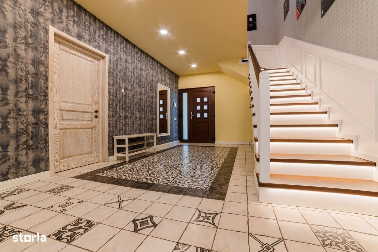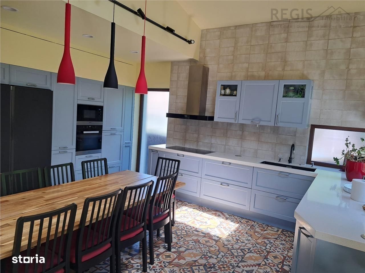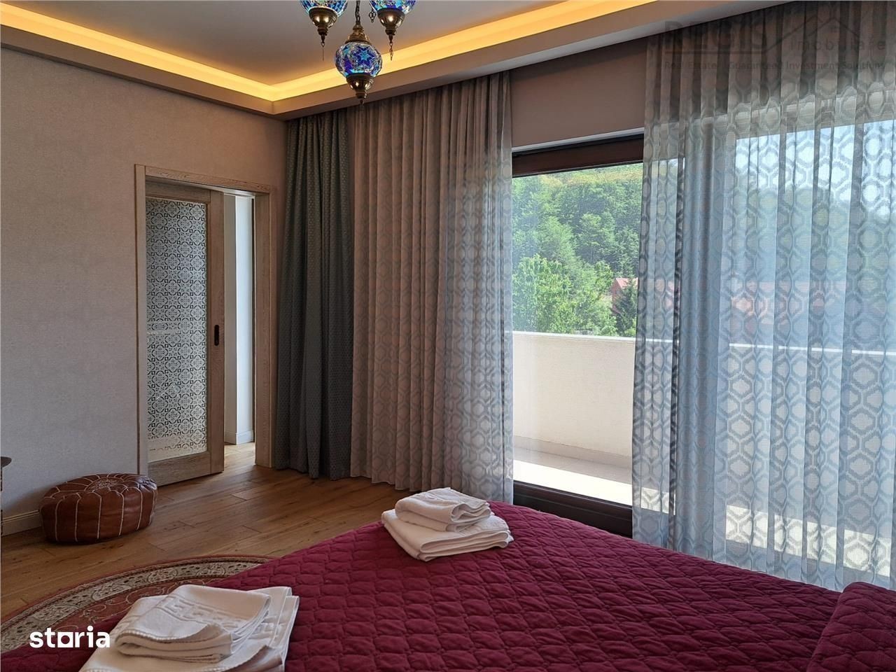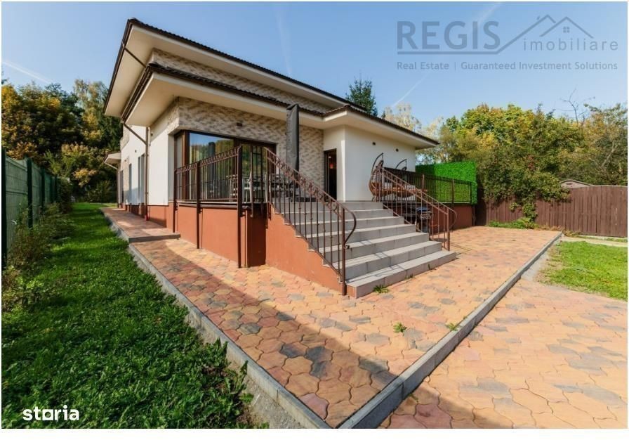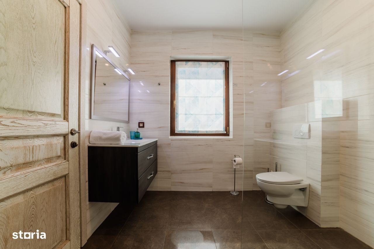 Vila de lux in Brasov in still mediteranean, finalizata cu materiale premium. Imobilul este pozitionat intr-o zona de case insorita si inconjurata de munti si padure. Distanta pana in centru: 15 min cu masina, 5 min pana la zona de hipermarketuri: Carrefour, Kaufland, Selgross, Metro.