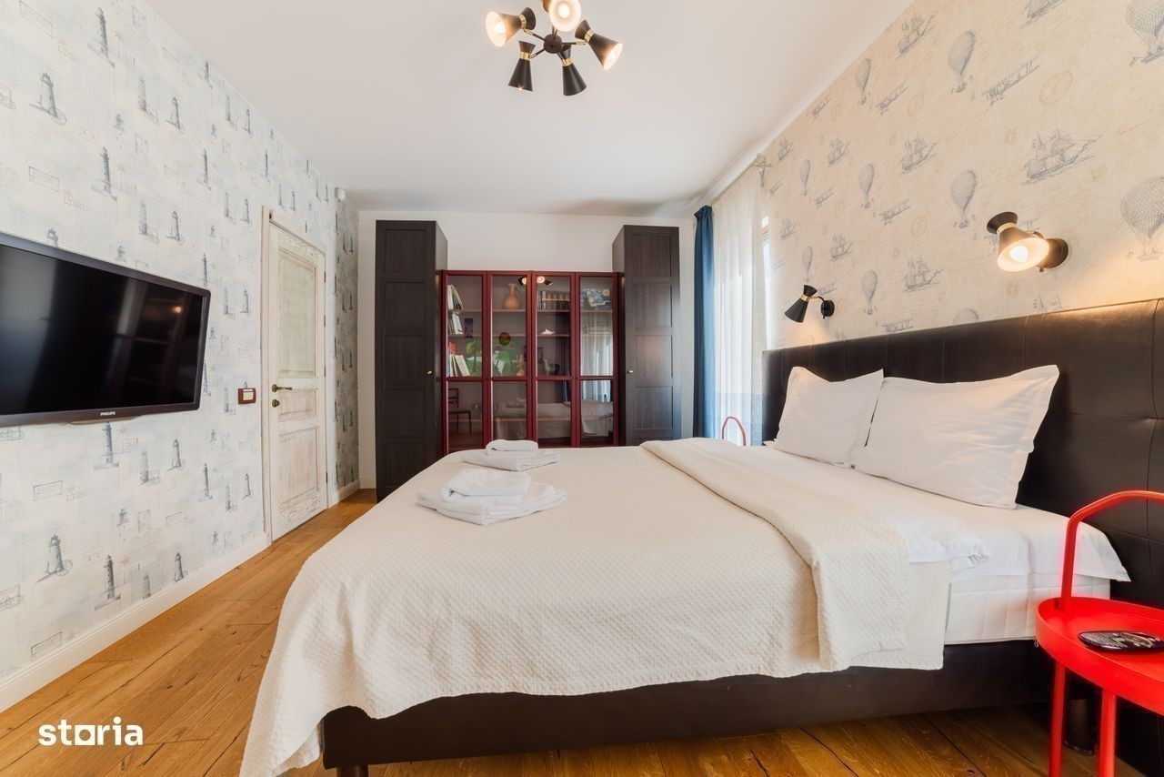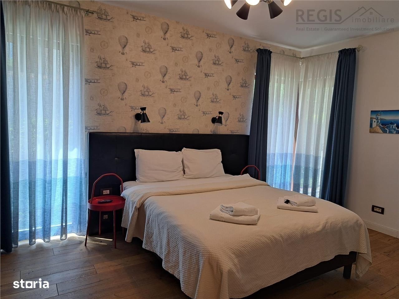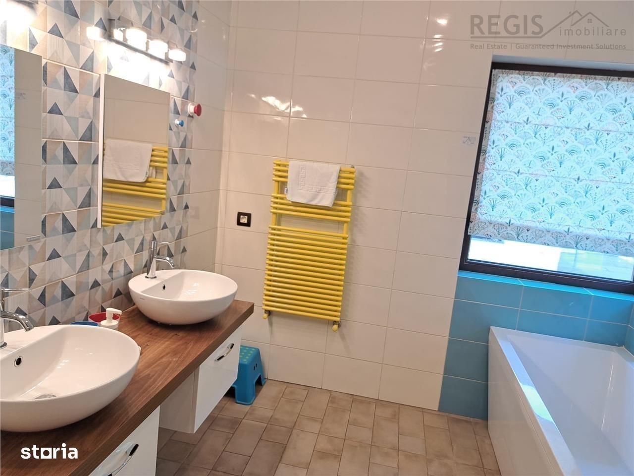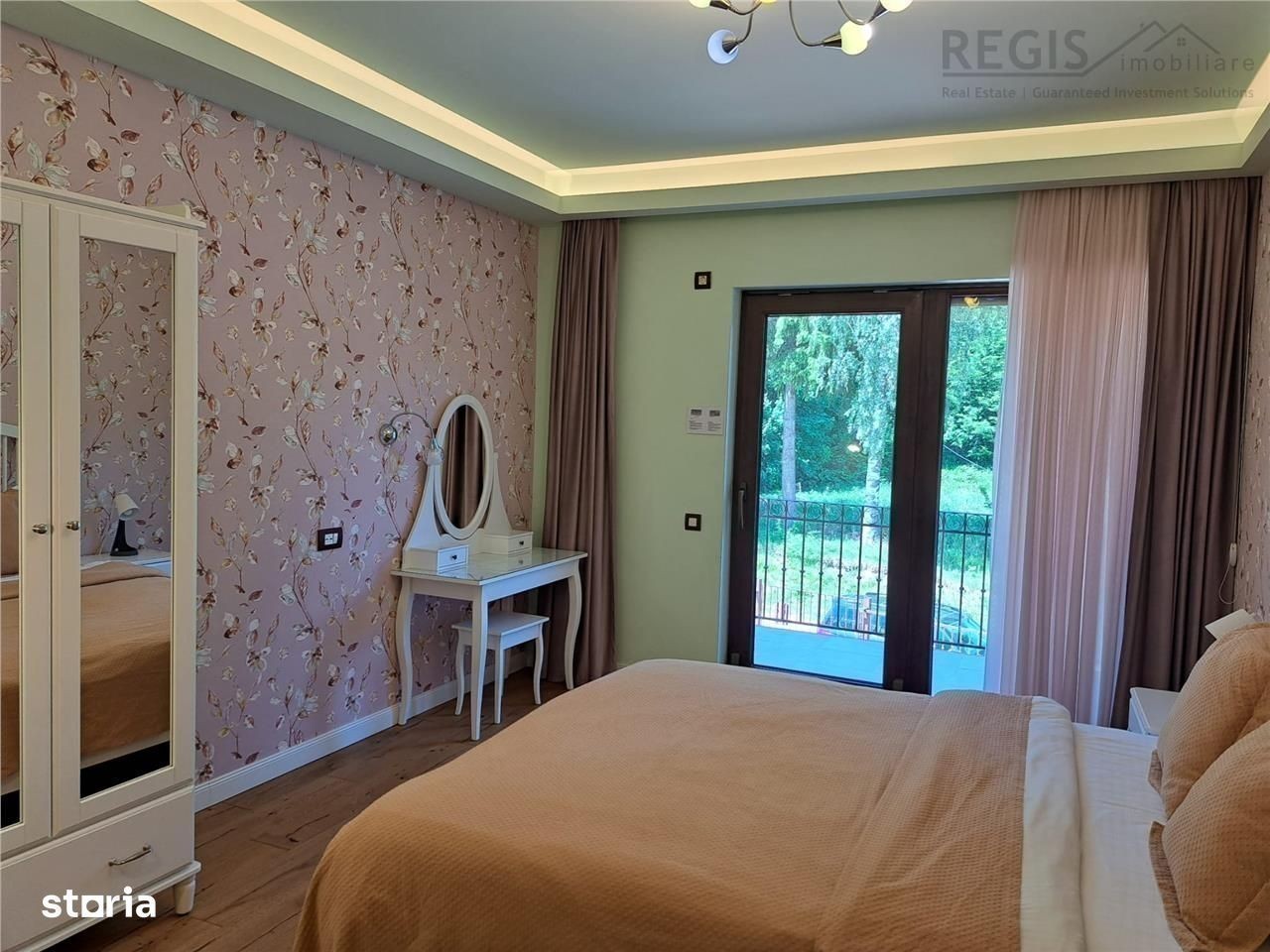 Vila de lux in Brasov in still mediteranean, finalizata cu materiale premium. Imobilul este pozitionat intr-o zona de case insorita si inconjurata de munti si padure. Distanta pana in centru: 15 min cu masina, 5 min pana la zona de hipermarketuri: Carrefour, Kaufland, Selgross, Metro.