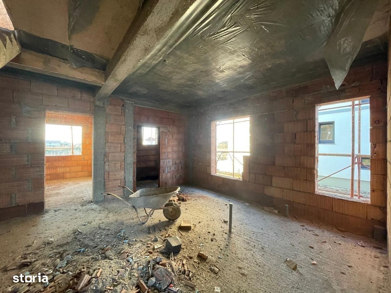 Rex Imobiliare va propune spre vanzare o jumatate de duplex despartit prin garaj, cu 4 dormitoare si situat intr-o pozitie excelenta in Mosnita Noua Aceasta jumatate va ofera 125mp suprafata utila, terasa de 20mp, balcon si un teren aferent de 300mp. Compartimentarea este realizata astfel: Parter: - hol - baie - living - dormitor - bucatarie inchisa - terasa - camera tehnica - garaj Etaj: - hol - baie - 3 dormitoare, dintre care unul cu balcon propriu Utilitati: apa, gaz, curent, canalizare, iluminat public, iar drumul asfaltat se afla la 200m distanta Incalzirea se realizeaza prin pardoseala cu ajutorul centralei proprii Detalii despre constructie: - ziduri exterioare din caramida de 25cm - ziduri interioare din caramida de 25 si 12,5cm - izolatie exterioara polistiren grafitat EPS100 10cm - ferestre PVC termopan Pret: 225.000 Euro negociabil In acest stadiu exista posibilitatea de alegere a finisajelor Pentru mai multe detalii si vizionari sunati la