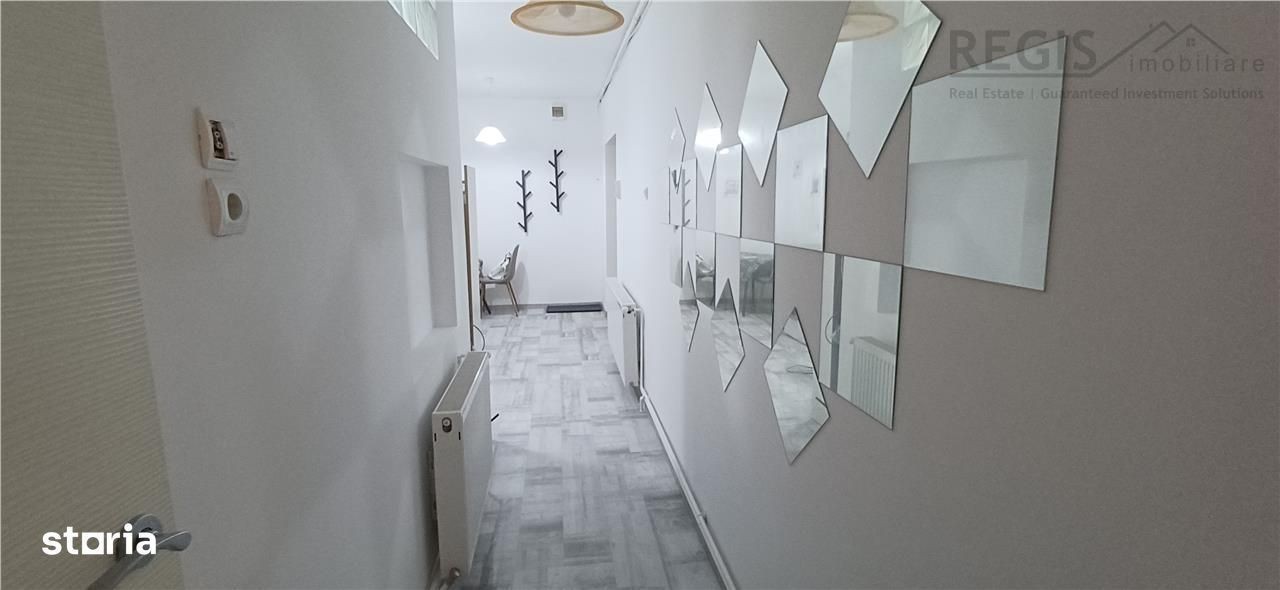 ID intern: 5766. Regis Imobiliare va prezita spre inchiriere un apartament cu 2 camere situat Ultracentral. Apartamentul combina armonios eleganta arhitecturala a trecutului cu confortul si dotarile actuale. Mobilierul este modern și minimalist, oferind confort, iar culorile neutre sunt accentuate de accente de culoare provenite din decor și operele de artă contemporană. Bucătăria este complet utilată, având electrocasnice de ultimă generație și un spațiu de dining, ideal pentru socializare. Dormitorul detine un pat king-size și 2 dressing uri. Baia, modernă și spațioasă, dispune de finisaje premium, o cabină de duș confortabilă și ustensile de toaletă rafinate. În plus, apartamentul are acces la internet de mare viteză. În apropiere, se află numeroase restaurante, cafenele și magazine, iar principalele atracții turistice sunt la câteva minute de mers pe jos, făcând din acest apartament o alegere ideală pentru cei care doresc să experimenteze viața urbană din Brașov. Comisionul agentiei este de 50%+TVA o singura data la semnarea contractului de inchiriere.