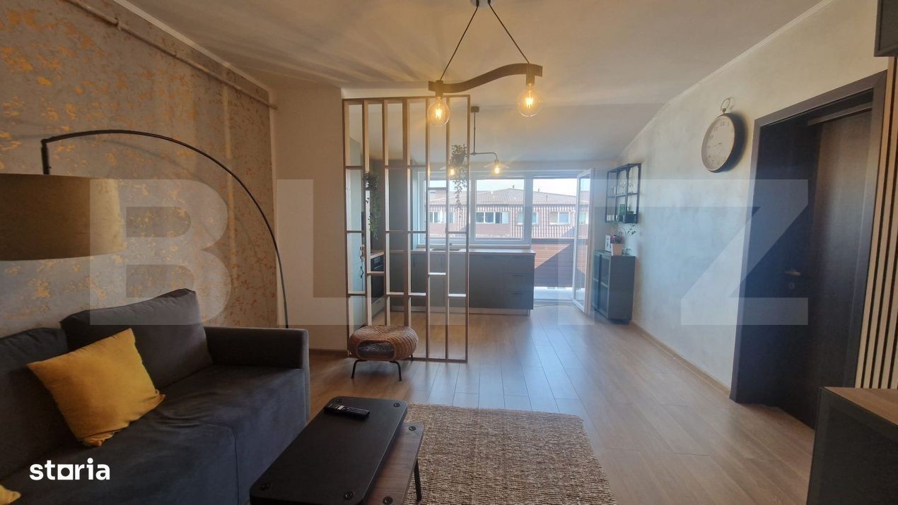 Vă propunem spre vânzare un apartament cu 2 camere, complet nou și intabulat, situat într-un bloc modern, recent dat în folosință. Locuința este decomandată și foarte bine compartimentată, oferind un confort deosebit atât pentru locuire proprie, cât și pentru investiție. Apartamentul beneficiază de un balcon generos, un dressing spațios pentru depozitare eficientă, iar în preț este inclus și un loc de parcare. Se vinde complet mobilat și utilat lux, exact așa cum apare în fotografii, ceea ce înseamnă că viitorul proprietar se poate muta imediat, fără alte investiții suplimentare. Finisajele sunt moderne și de calitate, iar fiecare detaliu a fost gândit pentru un stil de viață confortabil și elegant. Zona este una excelentă, cu acces rapid la grădiniță, școală, restaurante, magazine, precum și la diverse servicii (salon de înfrumusețare, spații comerciale). De asemenea, mall-ul Coresi se află la doar 10 minute distanță, oferind numeroase opțiuni de shopping și recreere. Apartamentul este ideal pentru cei care își doresc o locuință modernă, gata de mutare, într-o zonă liniștită și bine conectată la punctele de interes ale orașului. Vă așteptăm cu drag la vizionare!