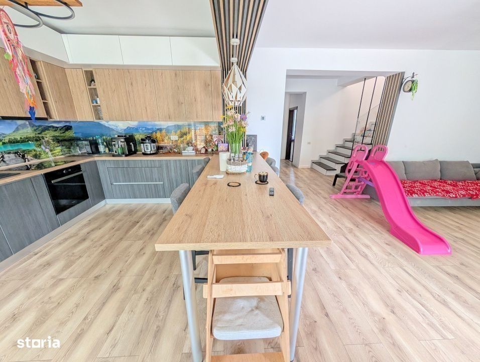 Va oferim spre achizitie fara comision o casa tip duplex superba, cu finisaje si dotari premium, complet mobilata si utilata la cel mai inalt nivel de calitate. Asa cum v-am obisnuit: - toate ofertele Monga Imobiliare sunt fara comision din partea cumparatorului - pentru ca iubim transparenta, toate preturile afisate de Monga Imobiliare includ TVA (daca se aplica). Pretul afisat de noi este intotdeauna pretul final pe care il vei achita. Acceseaza Monga Imobiliare (Monga RO) pentru mai mai multe poze si pentru intreg portofoliul nostru de case si apartamente din Otopeni, Tunari, Balotesti, Corbeanca, Pipera si chiar nordul Bucurestiului. Punctele forte al acestei case sunt numeroase, incepand bineinteles cu locatia cu vedere la lac, si amenajarea premium cu materiale si mobilier de calitate. Despre spatiu: La parter, accesul se face intr-un hol ce comunica pe de o parte cu spatii de depozitare, o baie si un birou, cu scarile catre etaj, iar pe cealalta parte cu living-dining spatios cu bucatarie deschisa. La etaj avem un dormitor matrimonial cu baie proprie, inca doua dormitoare si o baie. Din living se acceseaza terasa generoasa inchisa pentru un plus de confort. Va asteptam la vizionare pentru a descoperi toate aceste detalii si multe altele ale acestei proprietati cu adevarat deosebite. Apeleaza cu incredere la Monga Imobiliare. Suntem alaturi de tine pana la finalizarea tranzactiei si te ajutam sa treci cu incredere si in cunostinta de cauza prin toti pasii necesari. Te putem ajuta in pregatirea documentelor, selectia notarului, obtinerea finantarii, si altele. Te asteptam sa ne contactezi.