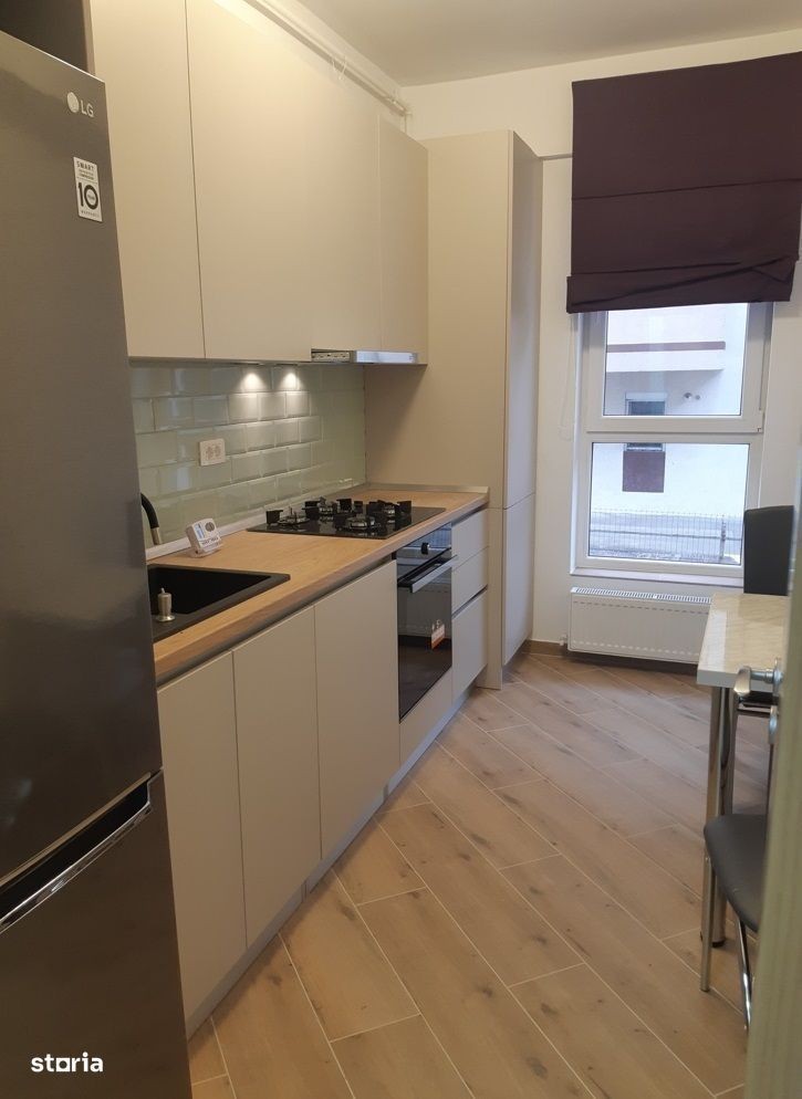 Se oferă spre închiriere o garsonieră modernă în zona Noul Popești-Leordeni - Dimitrie Leonida Metrou, Drm. Fermei 97, cu suprafața de 37 mp, situată la parterul înalt (similar cu etajul 1) al unui bloc nou cu 5 nivele construit construit in anul 2021, 8-10 minute metrou. Imobilul dispune de finisaje, dotări și electrocasnice premium, mobilier în întregime pe comandă Mobexpert, aer condiționat, multiple spații de depozitare.