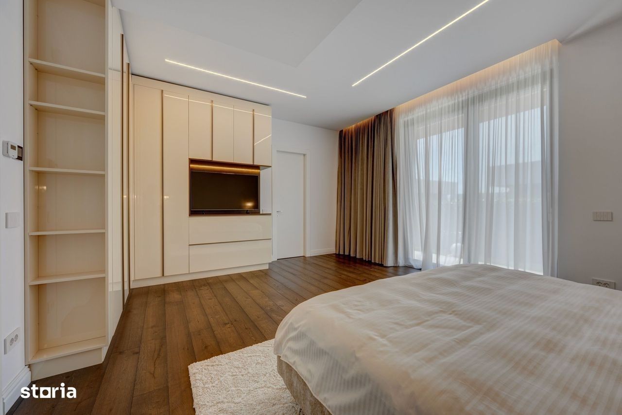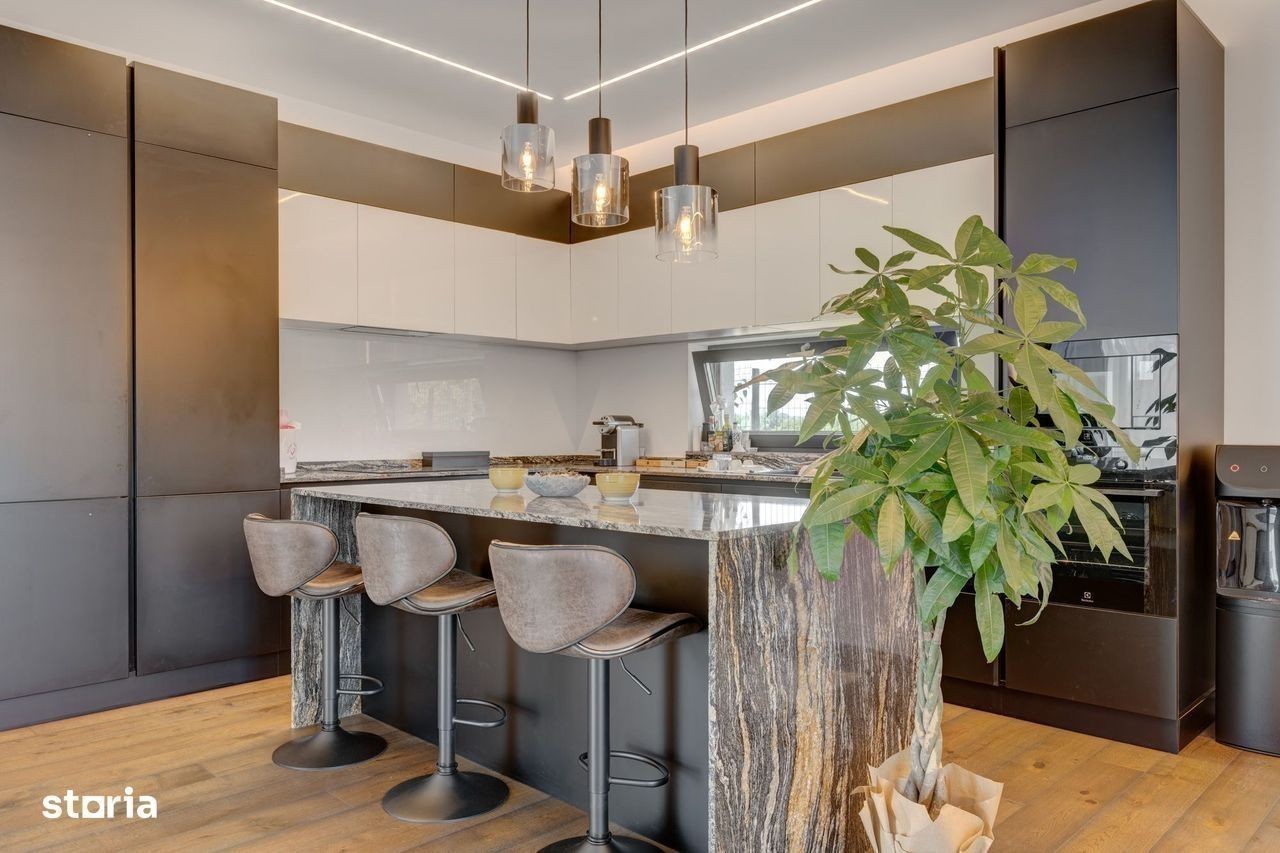 Ansamblu rezidențial boutique - 9 vile moderne în Snagov IMAGINI CU TITLU DE PREZENTARE - CASELE SE VAND LA GRI Situat într-o zonă privilegiată din Snagov, la doar câteva minute de mers pe jos de LIDL și alte facilități esențiale, acest proiect exclusivist propune un stil de viață echilibrat, între natură, confort și comunitate. Ansamblul cuprinde doar 9 vile individuale, perfect integrate într-un peisaj natural și accesibile printr-o stradă asfaltată, circulată exclusiv de riverani, asigurând intimitate și siguranță pentru fiecare familie. Fiecare locuință este dezvoltată pe un singur nivel (parter), cu o suprafață utilă de 161 mp și o suprafață totală de 220 mp, incluzând terase spațioase care conectează interiorul cu exteriorul într-un mod firesc și elegant. Un stil de viață premium, într-un cadru relaxat Proiectul este gândit pentru cei care își doresc mai mult decât o simplă locuință - este vorba despre un concept de comunitate restrânsă și atent selectată, cu acces comun la: Ponton privat pe lac, ideal pentru momente de relaxare sau activități recreative Piscină a complexului, perfectă pentru zilele calde de vară Spații verzi și comune generoase, pentru socializare și petrecerea timpului liber într-un mediu sigur și plăcut Construcție solidă, dotări premium Fiecare casă este realizată cu atenție la detalii și materiale de calitate superioară, având: Tâmplărie din aluminiu Schüco, cu geam tripan, pentru izolare termică și fonică excelentă Suprafețe vitrate mari, care permit luminii naturale să inunde interiorul și oferă o conexiune permanentă cu exteriorul Compartimentare inteligentă, care maximizează spațiul și confortul Locuințele sunt proiectate pentru a oferi confort pe termen lung, atât prin calitatea construcției, cât și prin designul modern, adaptat nevoilor familiilor actuale. IMAGINI CU TITLU DE PREZENTARE - CASELE SE VAND LA GRI