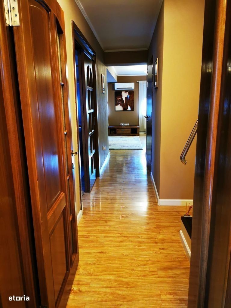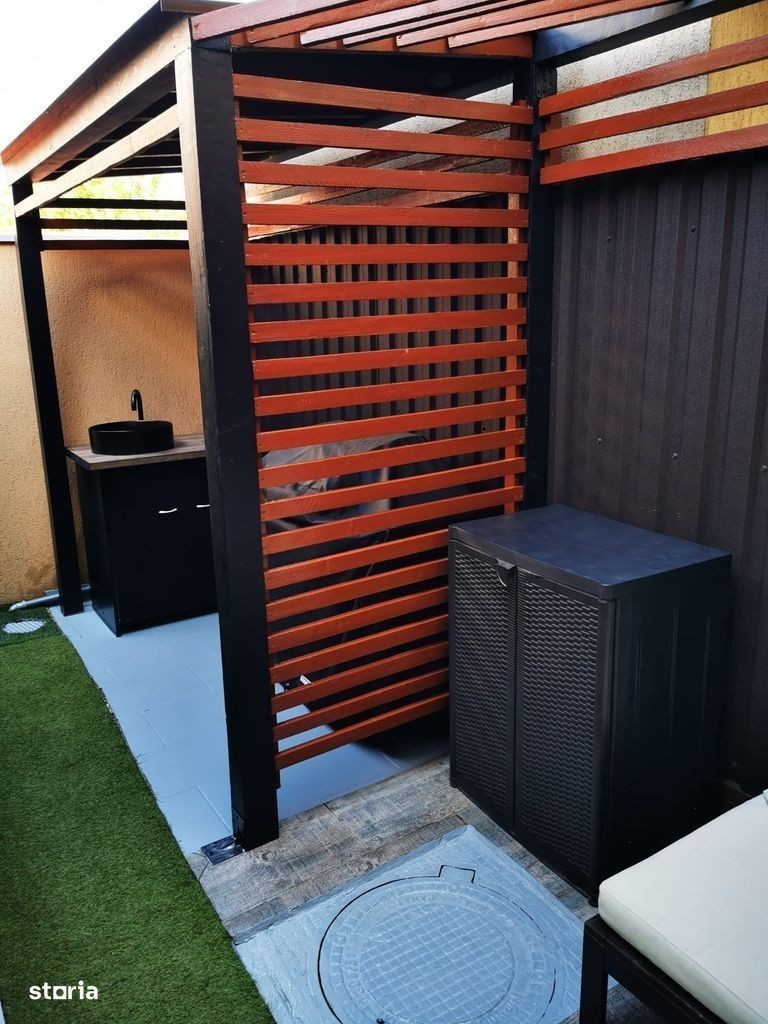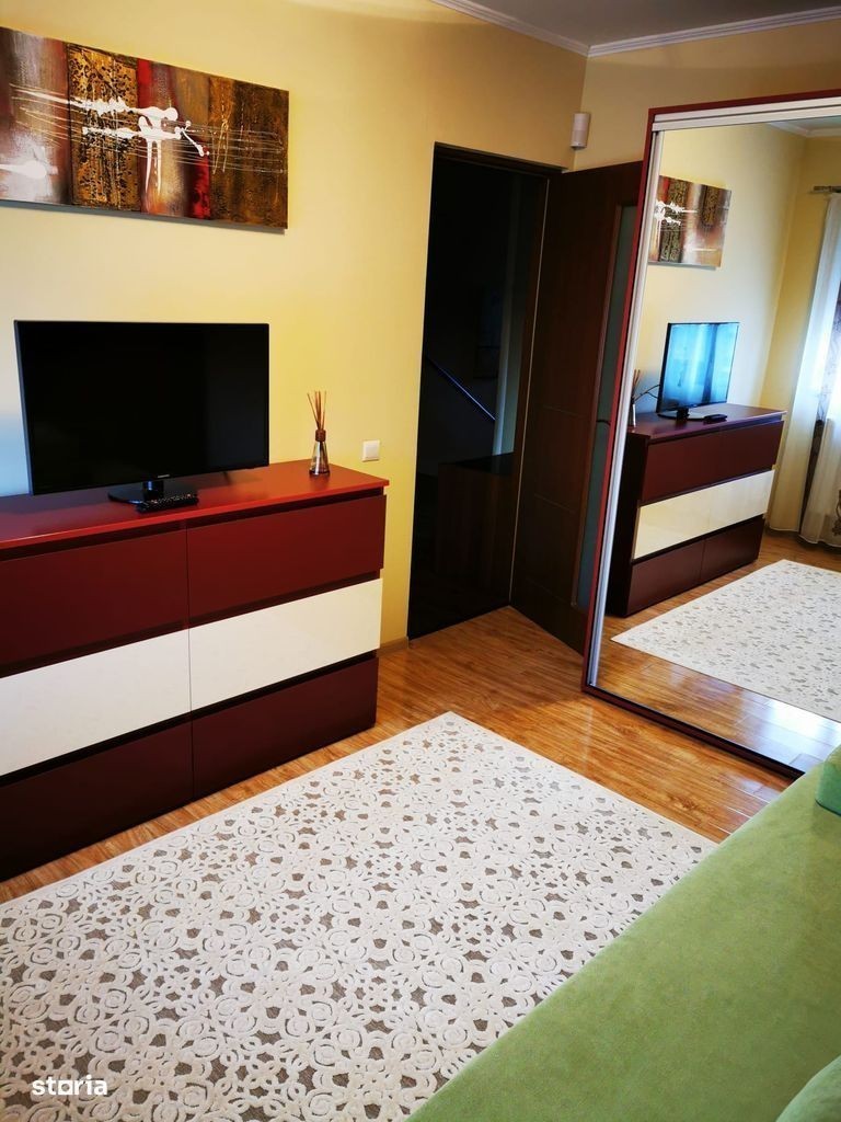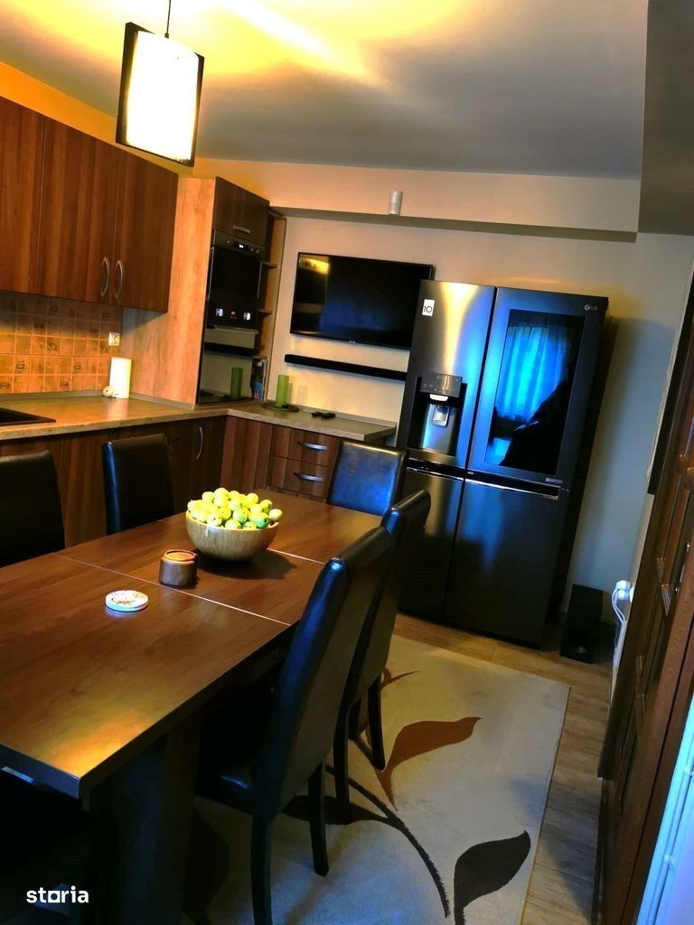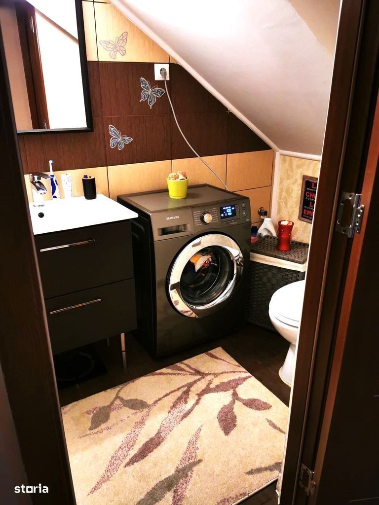 Casa de vanzare in Domnesti - Ilfov mobilata si utilata, compusa din parte si etaj cu multiple imbunatatiri. Casa are o suprafata de 110 MP utili si este compusa din: hol intrare, bucatarie inchisa, living si baie la parter, iar la etaj sunt 3 dormitoare si o baie. Dotari: 2 aere conditionate, balcon inchis termopan si cu jaluzele exterioare orizontale actionate electric; storuri exterioare la toate geamurile; panouri solare 6 KW; terasa de 9 MP inchisa cu jaluzele exterioare orizontale actionate electric; loc gratar amenajat; carport pentru 2 masini si inca un spatiu pentru a 3-a masina neacoperit; gradina cu flori si pomi fructiferi; curte 250 MP.