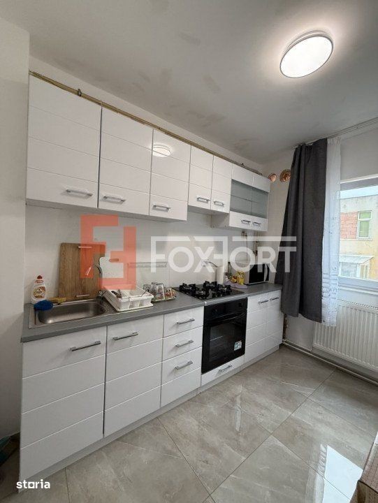Apartament cu 2 camere de vanzare in Timisoara, zona Bogdanestilor. FOXFORT propune spre vanzare un apartament cu 2 camere, semidecomandat, situat in localitatea Timisoara, zona Bogdanestilor, aflat la etajul 3 intr-un bloc cu regim de inaltime pe Parter + 4 Etaje. Anul constructiei 1970, structura beton, material zidarie placi beton. Suprafata utila de 50 mp. Apartamentul este structurat astfel: - Hol; - Bucatarie; - Baie; - Living; - Dormitor; - Hol intermediar; - Debara. Finisajele interioare sunt moderne: - Usa intrare: metal; - Usi interioare: celulare; - Tamplarie ferestre: pvc; - Podele: parchet, gresie. Apartamentul se vinde mobilat si utilat: plita, cuptor, masina de spalat rufe, frigider cu congelator, TV. Incalzirea se realizeaza prin intermediul centralei proprii prin calorifere. Apartamentul dispune de sistem de climatizare (A.C.), debara, boxa. Pretul este de 85.990€ - COMISION 0%. Se accepta ca si modalitate de plata surse proprii sau credit bancar. Indicator performanta energetica: Clasa C ID intern: V8640