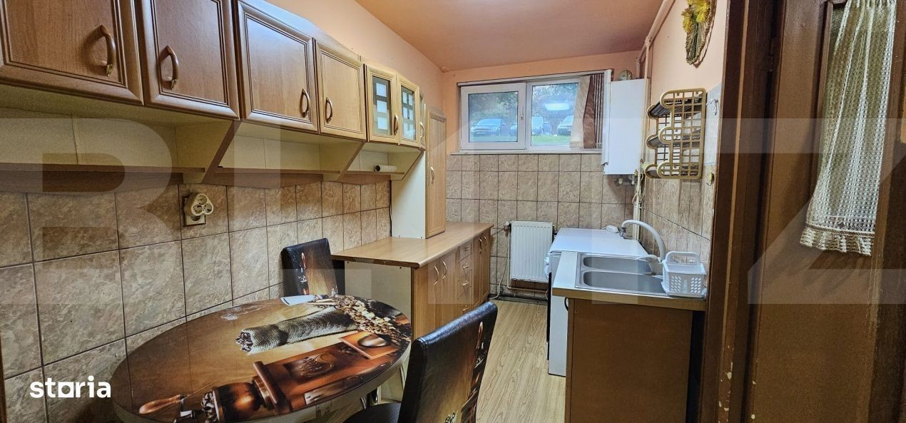 Blitz vă propune spre vânzare un apartament semidecomandat, la parterul unui din cartierul Simeria, zona Stadionului Mic. Blocul are o locație excelentă, aproape de grădinița Hofeherke, școala Varadi Jozsef, stadion, universitatea Babes-Bolyai, magazine, locuri de joacă și la câteva minute de centru pe jos. Apartamentul are 2 camere, cu 48 mp utili, orientare nord-est, (Bucătăria-vest) - Balcon uriaș de 7 mp. Este situat într-o zonă liniștită cu spații verzi. Are baie cu geam, o debara pentru depozitare - dispune de centrala proprie în stare buna. Apartamentul se vinde mobilat și utilat (frigider, mașina de spălat, aragaz), ceea ce permite utilizarea imediată ca locuință sau pentru inchiriere. Apartamentul este ideal pentru o familie sau pentru investiție, datorită poziționării excelente și a compartimentării echilibrate. Pentru mai multe detalii și programarea unei vizionări, nu ezitați să ne contactați!